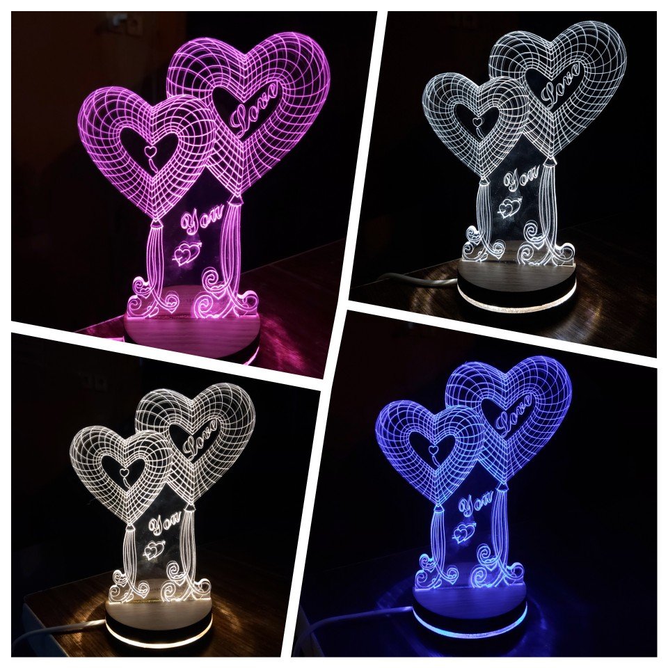 بالبینگ آباژور شبخواب چراغ خواب سه بعدی طرح دو قلب بادکنکی مبلمونسرا مدل 232284