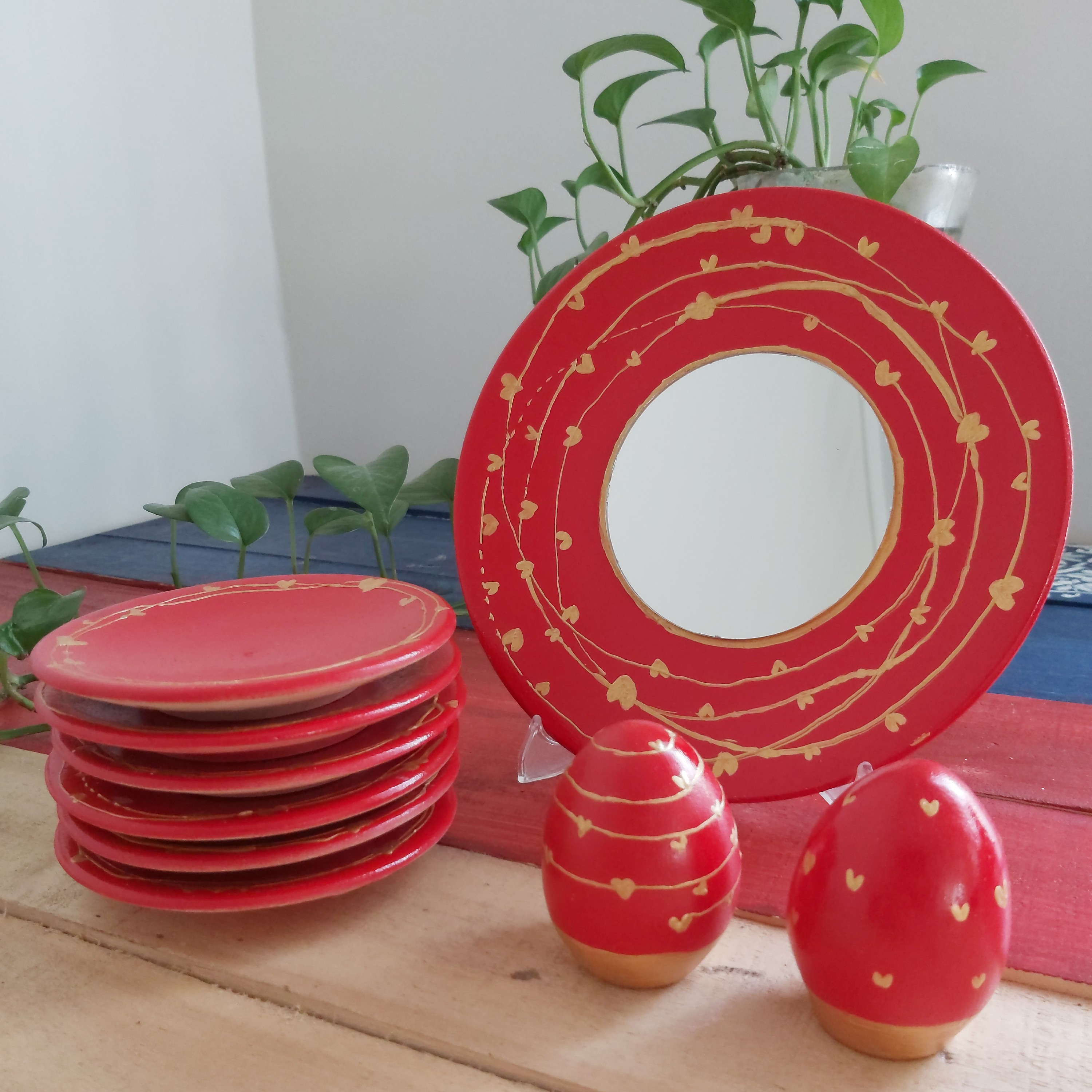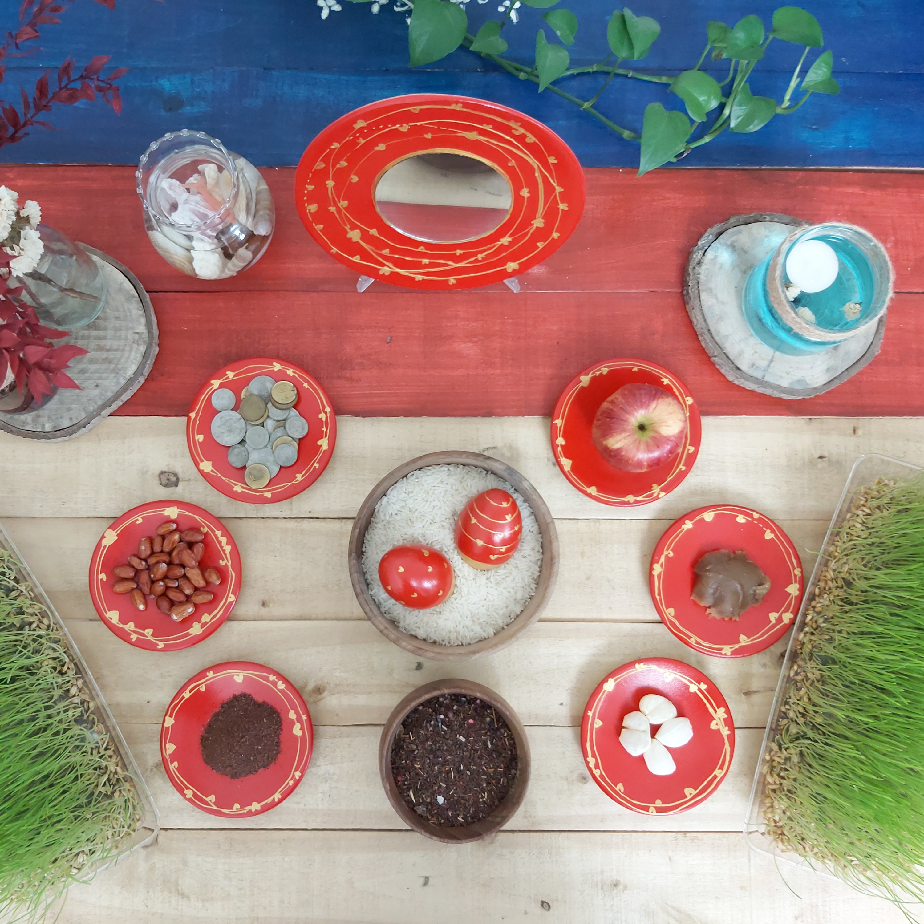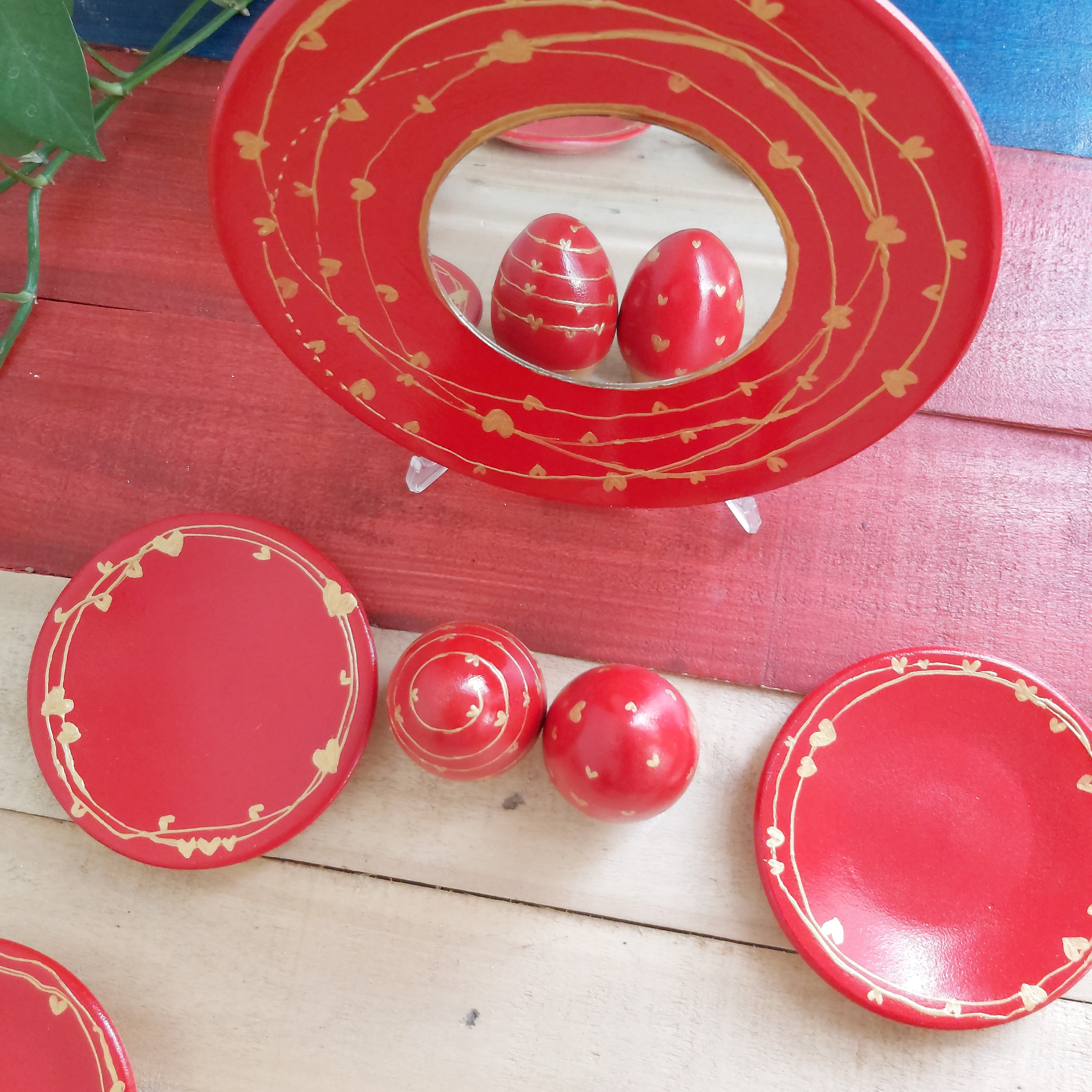 هفت سین قرمز طلایی رنگ شده اکریلیک قابل شستشو با دستمال نرم مبلمونسرا مدل 259019