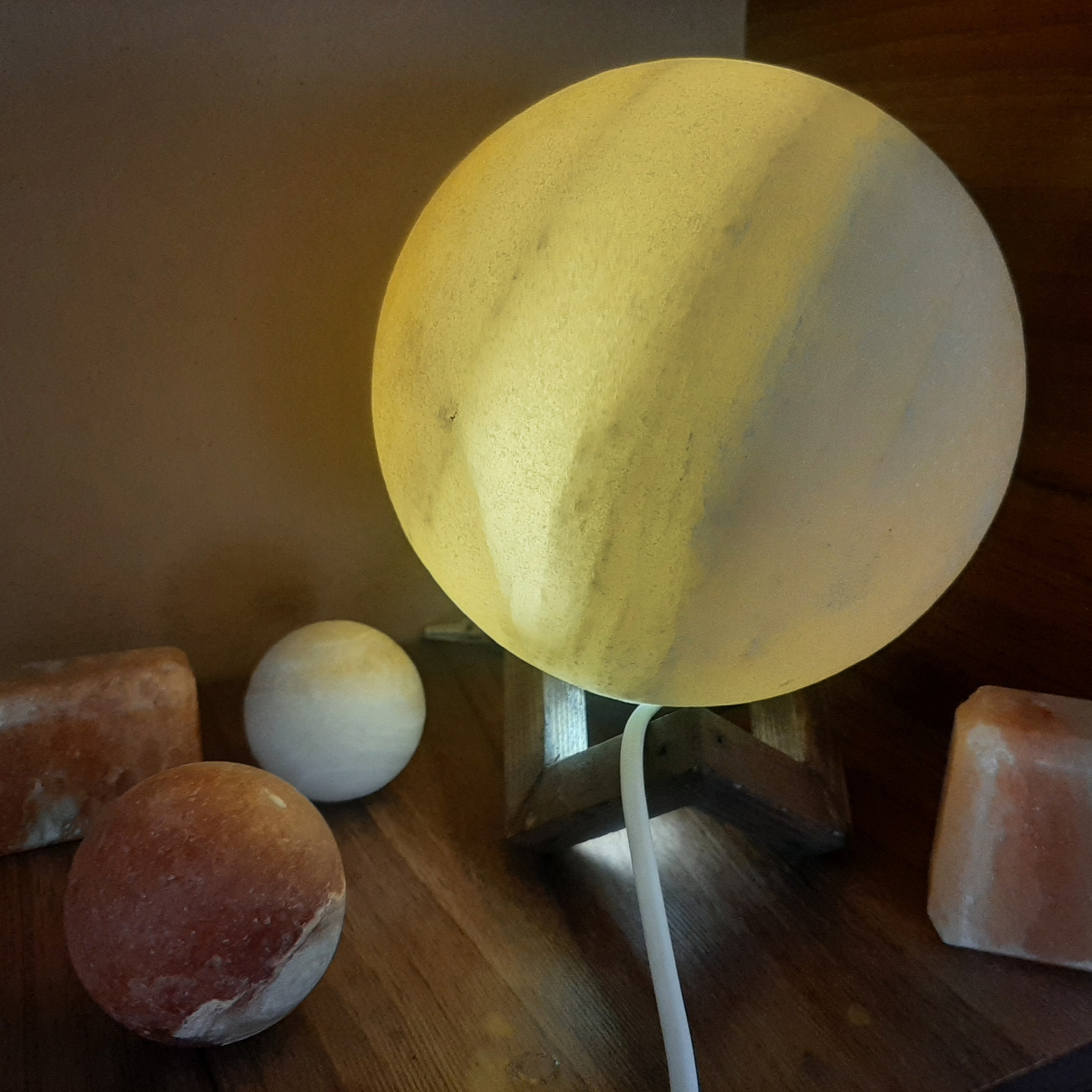 آباژور گوی سنگ نمک 12 با پایه چوبی. مبلمونسرا مدل 232926
