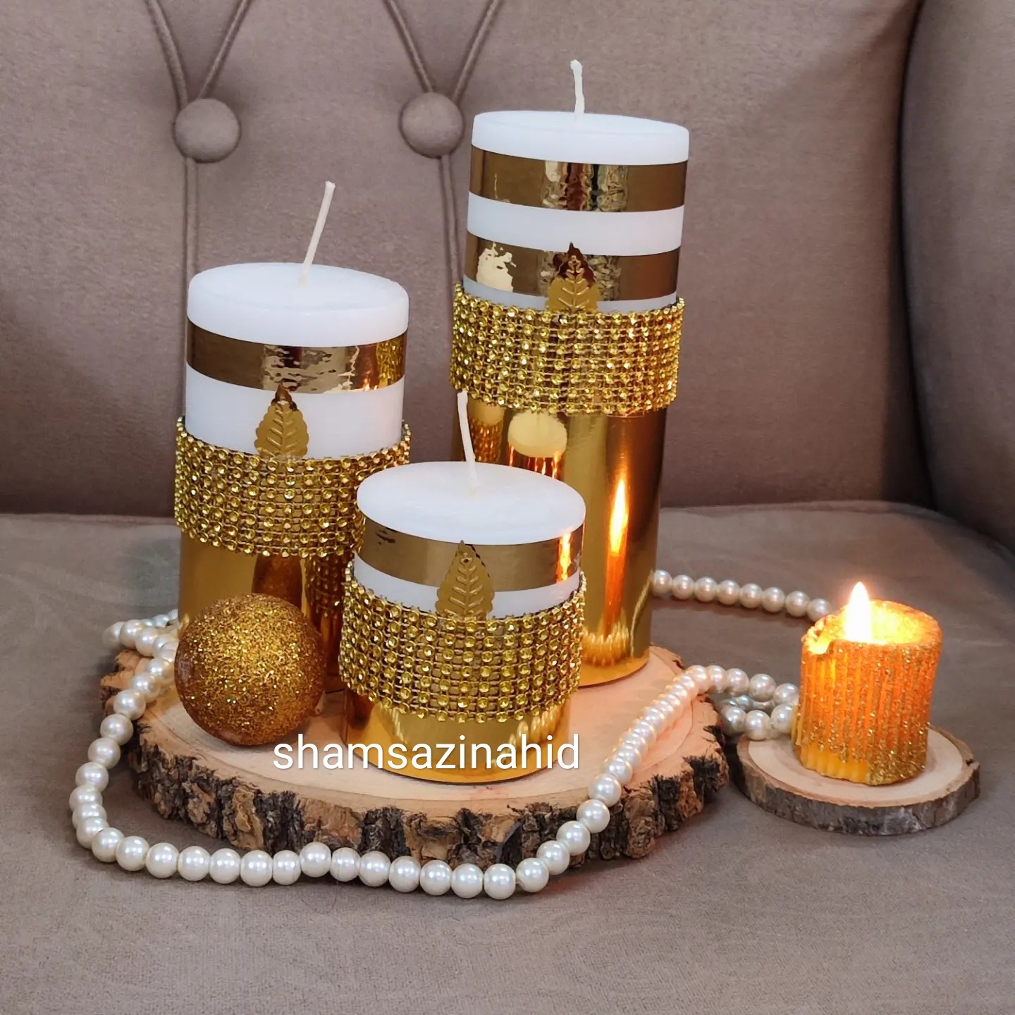 شمع استوانه ای تزئینی سه عددی مبلمونسرا مدل 286624