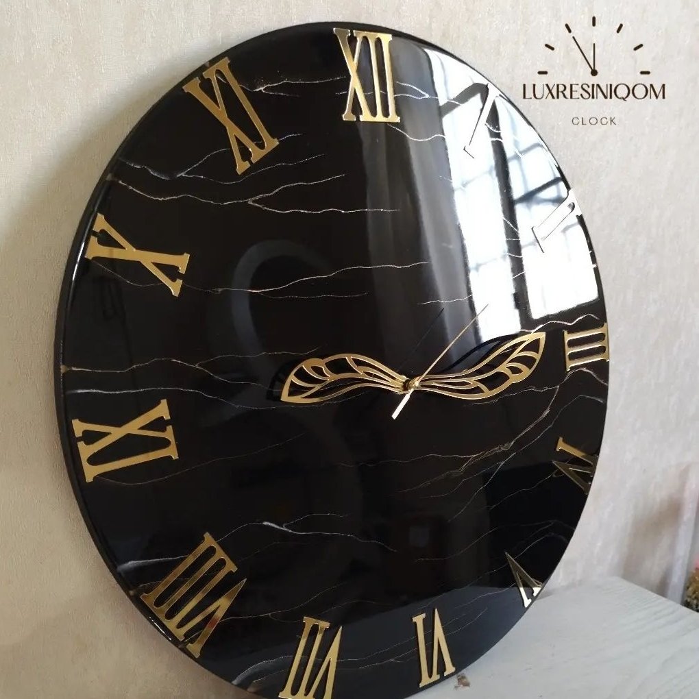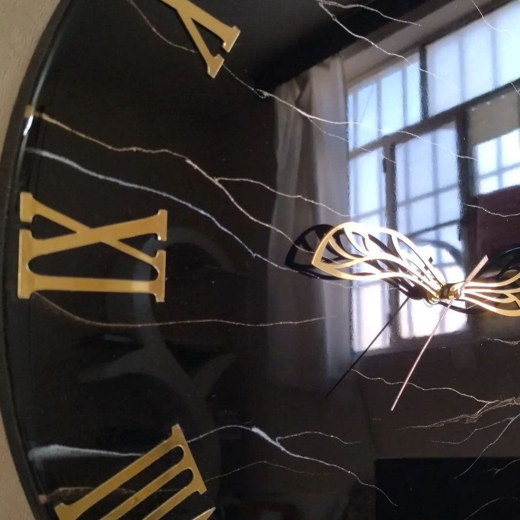 ساعت رزینی شیک مخصوص سخ پسندا کارشده بارزین و رنگ مشکی رنگ و ابعاد قابل تغییر می باشد قطر این کار ۵۰ سانت می باشد برای راهنمایی و سفارش پیام دهید