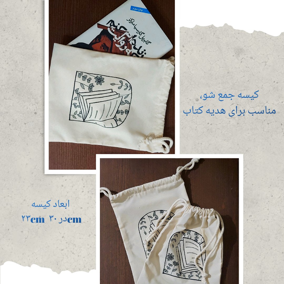 کیسه جمع شو مناسب برای هدیه کتاب، جنس متقال پنبه ، ابعاد 30 در 23 سانتی متر، تولید شده در گروه هنری شمراک مبلمونسرا مدل 298156