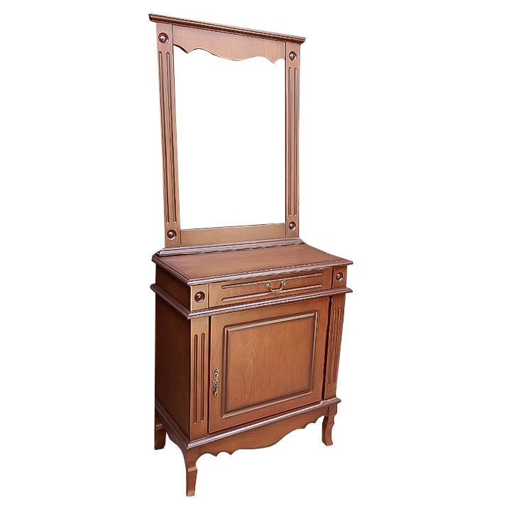آیینه و کنسول تک درب با آیینه یکی از شیک ترین و مینیمال ترین آیینه کنسول های مجموعه محسوب میشود و جزو بهترین و خاص ترین های آیینه کنسول محسوب می شود یکی از بارز ترین مشخصات این آیینه کنسول تمام چوب بودن کار است که فقط دو قسمت از آن چوب نمی باشد که ام دی افی است که بر روی آن روکش طبیعی چوب راش آمده است بهترین چوب راش برای تولید این آیینه کنسول استفاده شده است