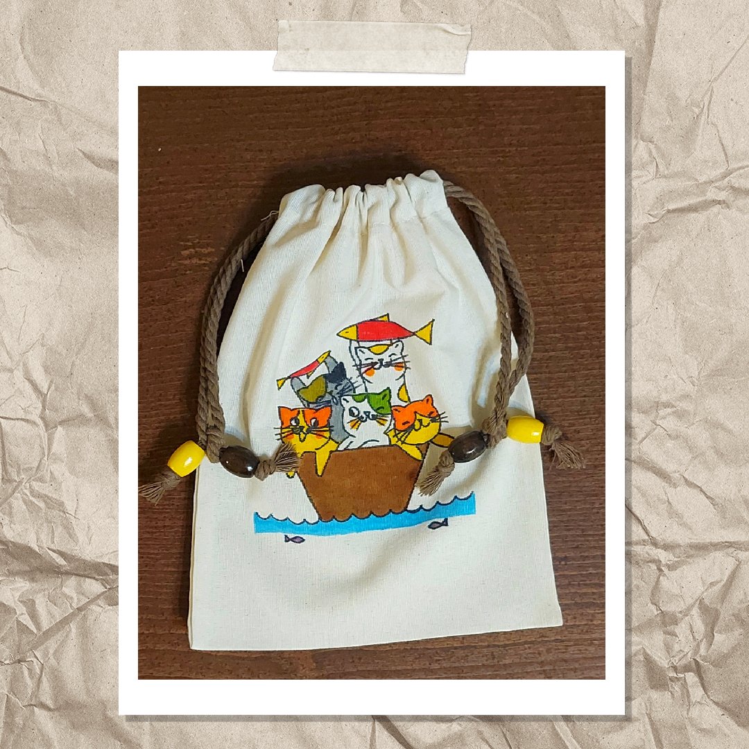 کیسه جمع شو، طرح گربه های دریانورد ، جنس متقال پنبه، نقاشی با دست،قابل شستشو ، ابعاد 18 در 23 سانتی متر مبلمونسرا مدل 297358