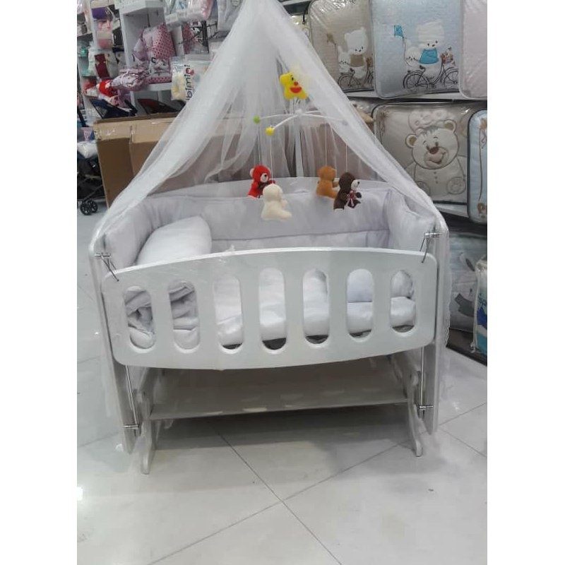 گهواره کنار مادر مدل آرسا -دارای تشک پتو بالشت گارد و تورتخت-جنس ام دی اف وکیوم شده-دارای حفاظ اسانسوری-دارای طبقه مبلمونسرا مدل 226700