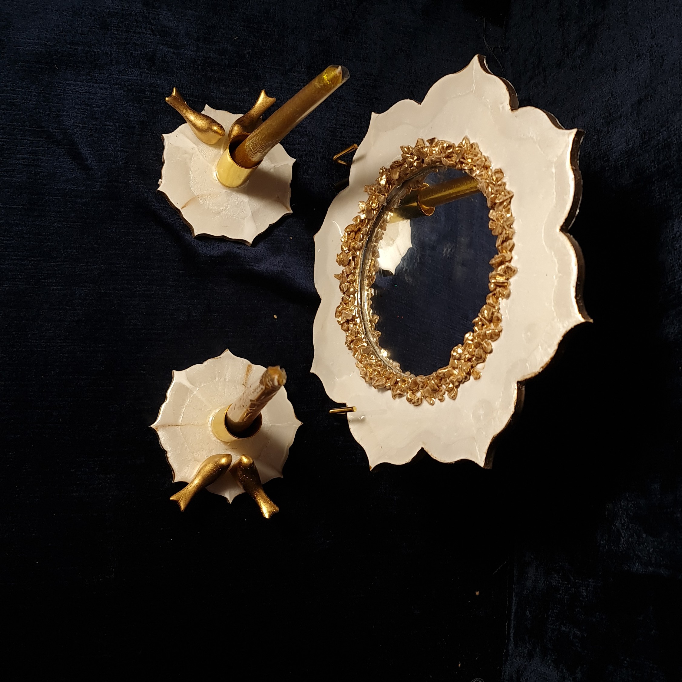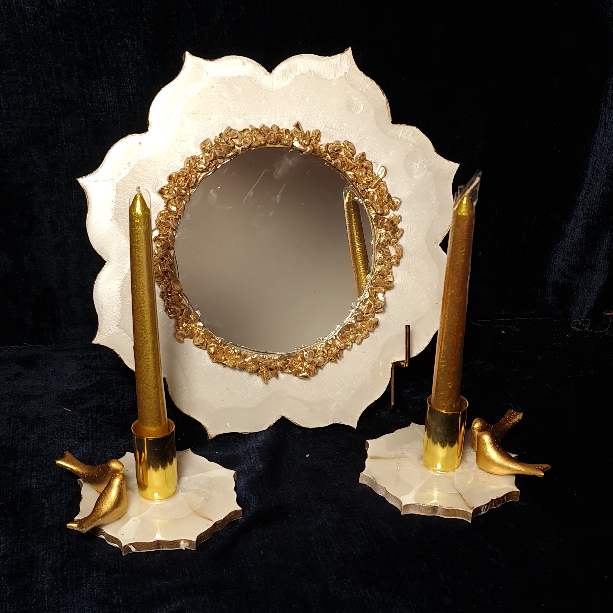 آینه و شمعدان طرح سنگ سفید طلایی با تزئین مرغ امین مبلمونسرا مدل 260757