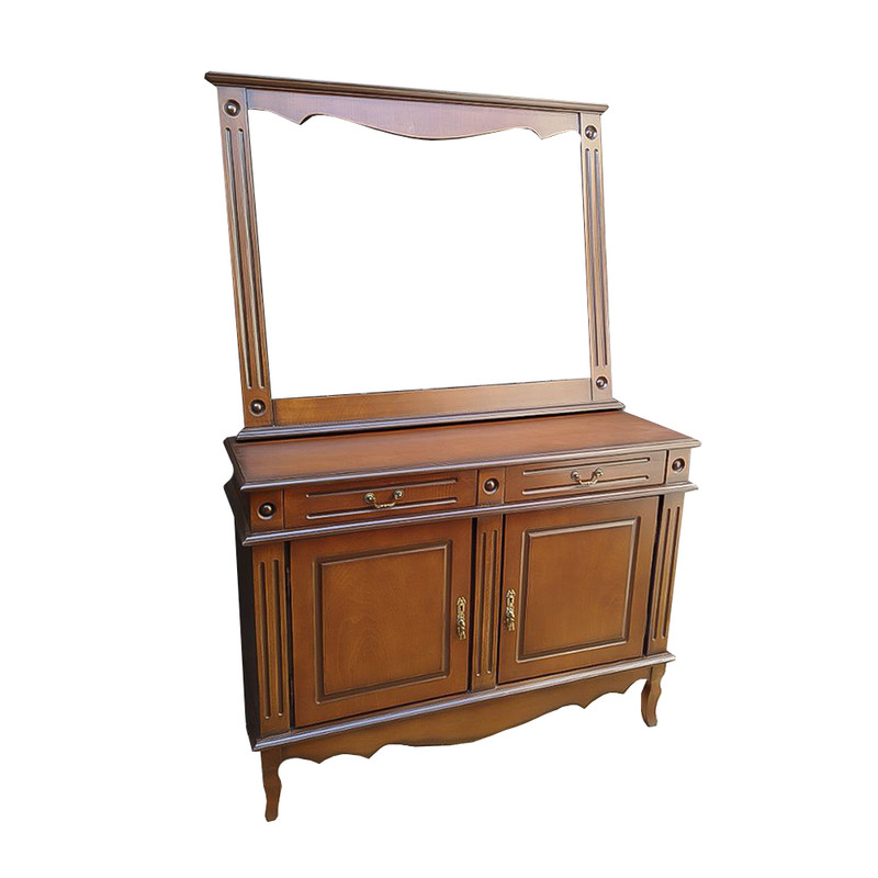 آیینه و کنسول دو درببه همراه آیینه یکی از شیک ترین آیینه کنسول های مجموعه محسوب میشود و جزو بهترین و خاص ترین های آیینه کنسول محسوب می شود یکی از بارز ترین مشخصات این آیینه کنسول تمام چوب بودن کار است که فقط دو قسمت از آن چوب نمی باشد که ام دی افی است که بر روی آن روکش طبیعی چوب راش آمده است بهترین چوب راش برای تولید این آیینه کنسول استفاده شده است