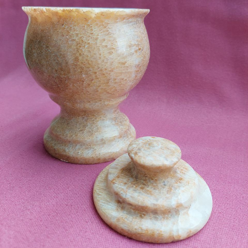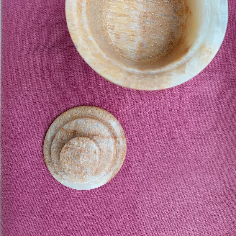 شکلات خوری سنگی سایز کوچک و یا قندان سنگی مدل پایه دار جنس سنگ مرمر پرتقالی مبلمونسرا مدل 296200