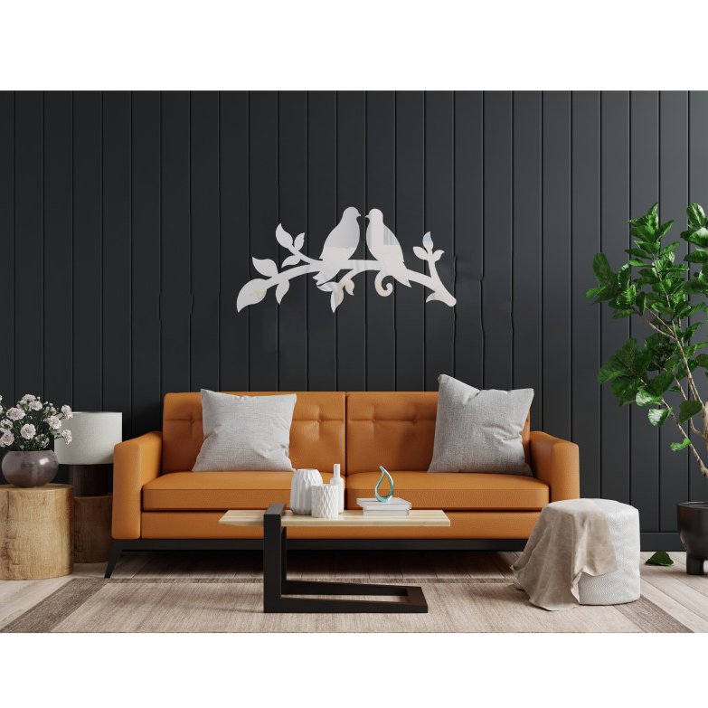 اینه دکوراتیو مولتی استایل، طرح کبوترهای عاشق، در دو رنگ طلایی و نقره ای، سایز 60 در 30 سانت مبلمونسرا مدل 263673
