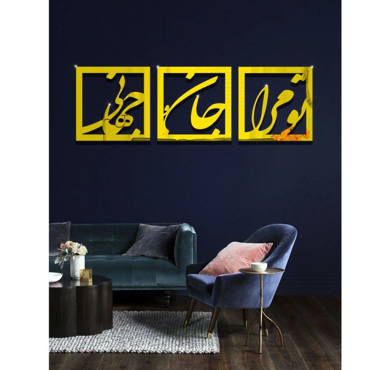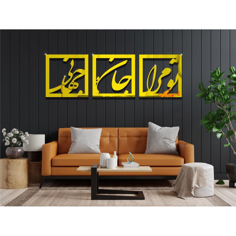 آینه دکوراتیو مولتی استایل، طرح جان جهان، در دو رنگ طلایی و نقره ای، سایز هر مربع 30 در 30 مبلمونسرا مدل 263036