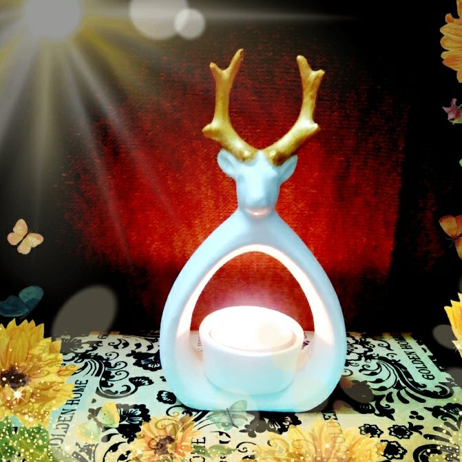 جا شمعی پلی استر پتینه طرح گوزن مبلمونسرا مدل 279992
