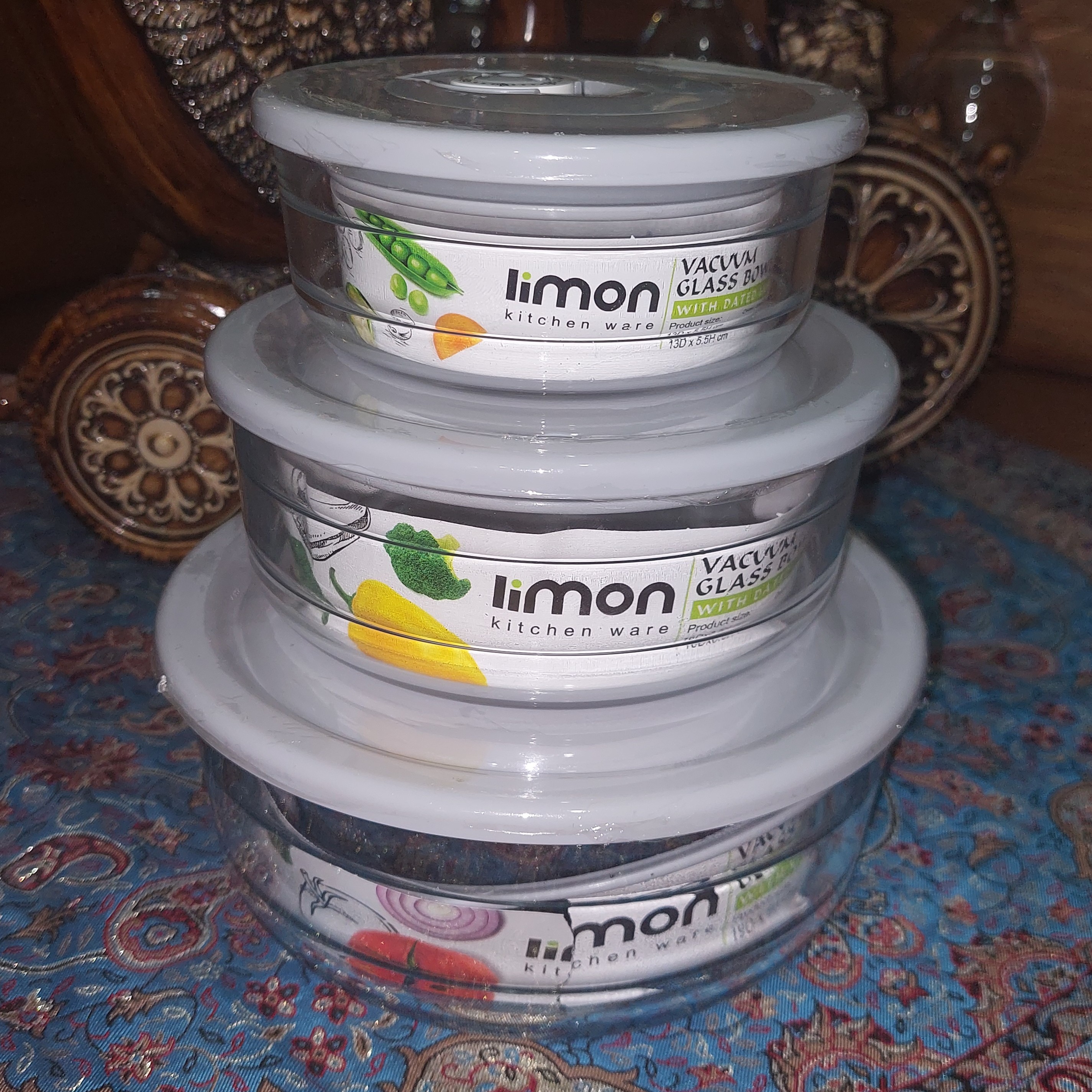 ست ظروف شیشه ای نگهدارنده وکیومی تاریخ دار لیمون سه تایی مبلمونسرا مدل 274274