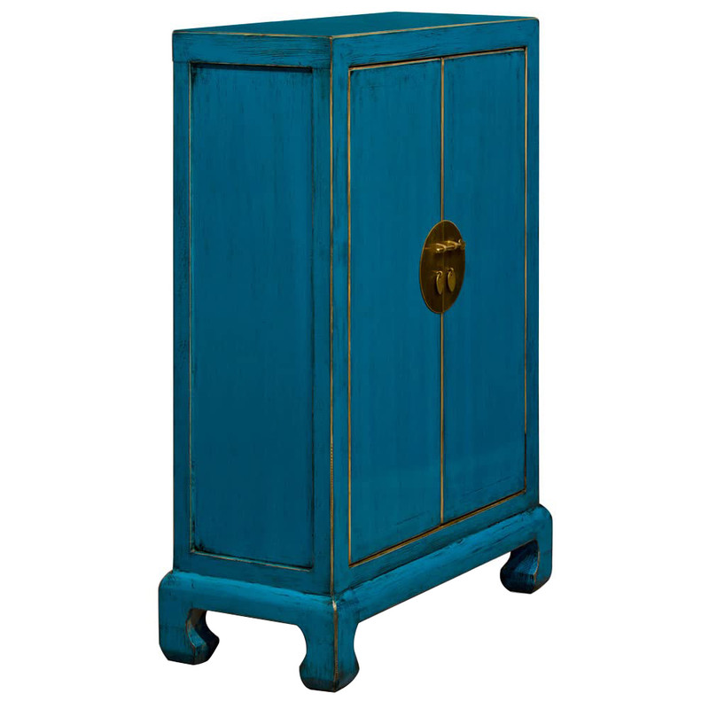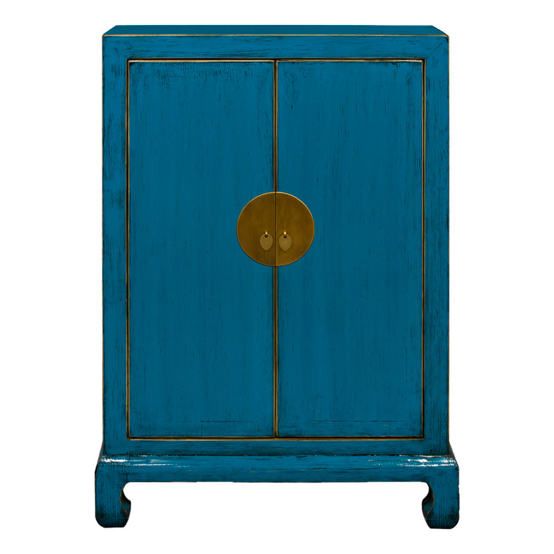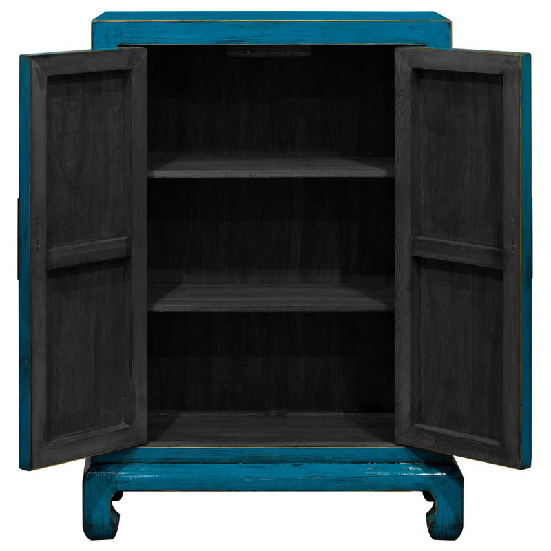 این کنسول با الهام از زیبایی مبلمان سبک مینگ ، نمایی ساده ، جذاب و متعادل دارد .دارای یک محفظه دو درب و دو قفسه میباشد . یکی از ویژگیهای کلیدی این کنسول ، پایه های خمیده درونی است که ویژگی مشخص مبلمان به سبک مینگ است . رنگ آمیزی و کهنه کاری این کنسول که کاملا دستی انجام شده القا کننده حس قدمت و انتخاب رنگ آبی ، آرامشی همراه با کانون توجه را در هر مکانی که قرار گیرد ایجاد میکند .