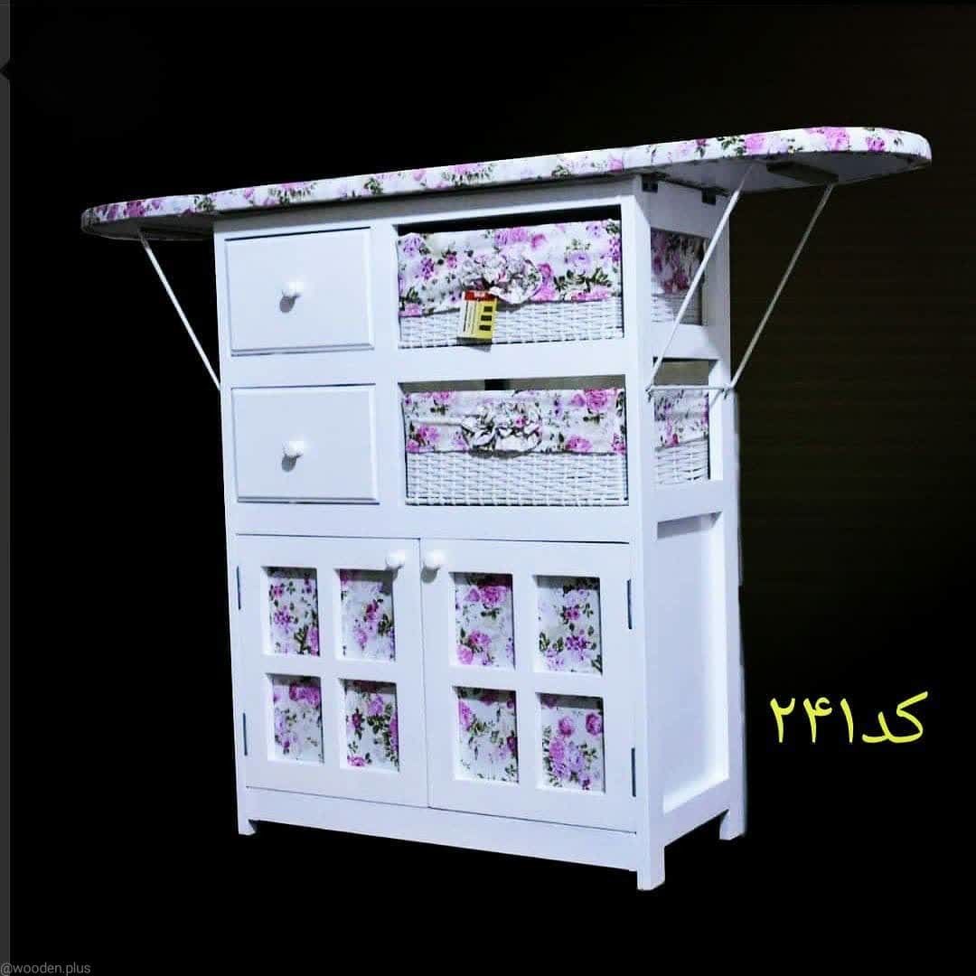 هزینه ارسال با مشتری میز اتو ام دی اف رنگ و پارچه به انتخاب شما سبد pvc سقف لبتابی درب لولا کشو ساده