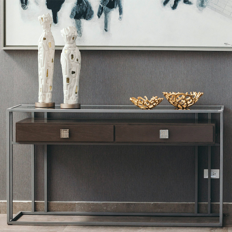 کنسول هی مدل B120، با طراحی ساده و دلنشین، انتخابی مناسب برای تزئین فضای خانه و اتاق خواب است. سبک مینیمال این محصول، همراه با استفاده از استانداردهای اروپایی در ساخت، از استحکام و کیفیت بینظیری برخوردار است. این کنسول دارای دو کشو و پایههای فلزی است که در فضای اندکی جا میگیرند و در عین حال با طراحی جذاب خود، جلوهای مدرن به محیط میبخشد.