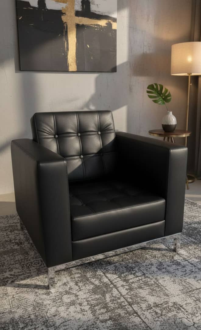 محصولی بسیار شیک و درجه یک . کلاف بسیار مستحکم ، پایه فلزی با روکش کروم ، چرم کریستال و فوم سرد . طراحی منحصر بفرد و شرکتی