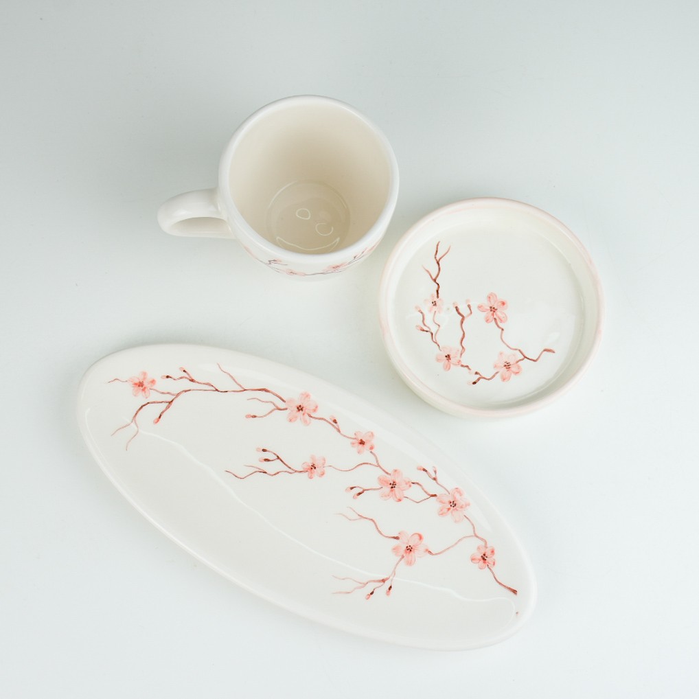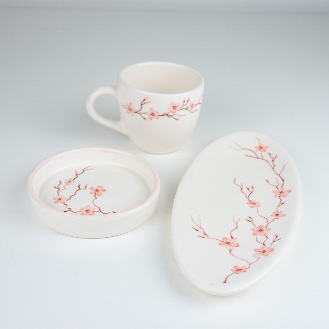 ست ظرف چایخوری سرامیکی 3 تکه یک نفره دستساز طرح نیلابی مبلمونسرا مدل 276159