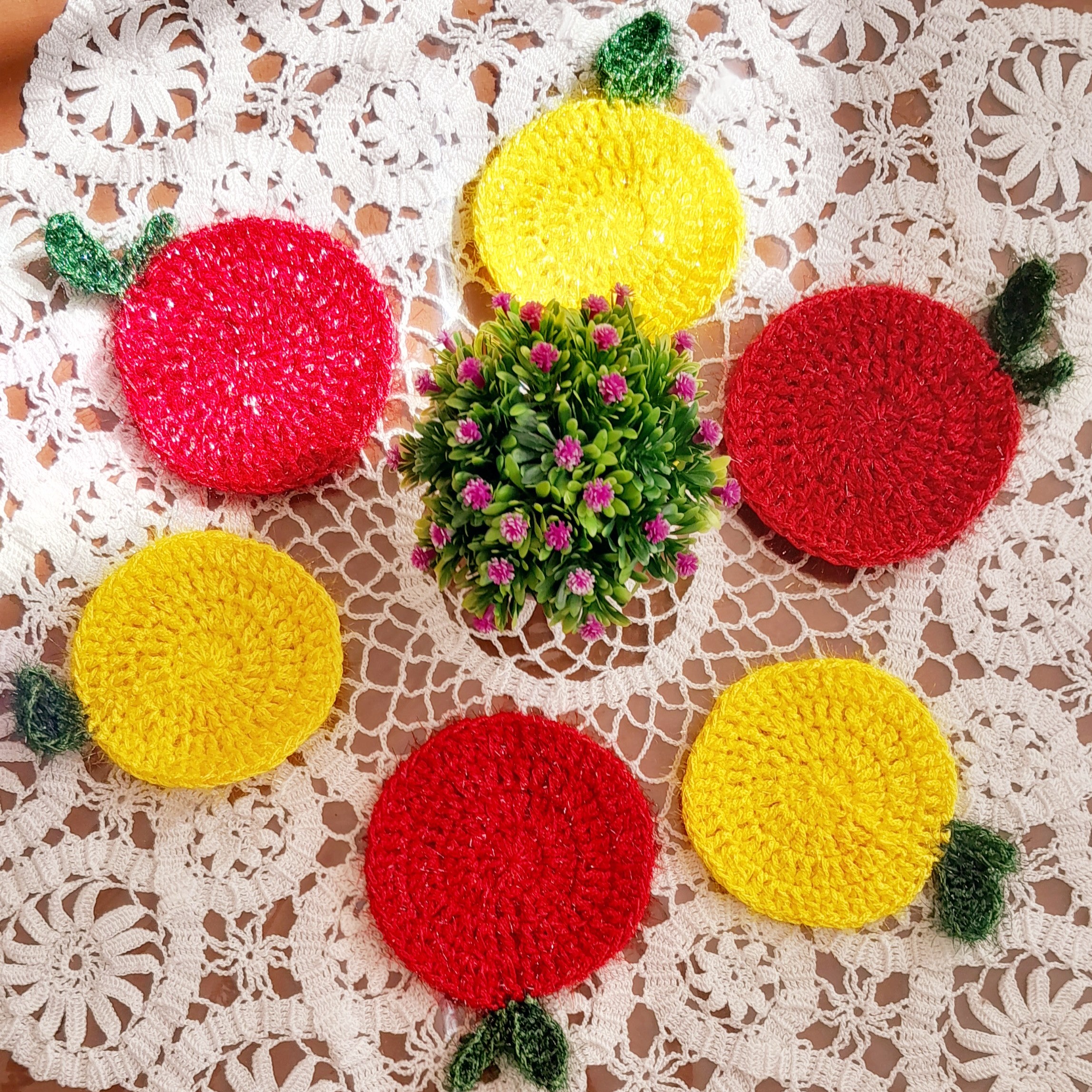 ست طرح سیب دست بافت زیبا و کاربردی مناسب زیر لیوانی هفت سین با رنگ و تعداد دلخواه شما مبلمونسرا مدل 301485