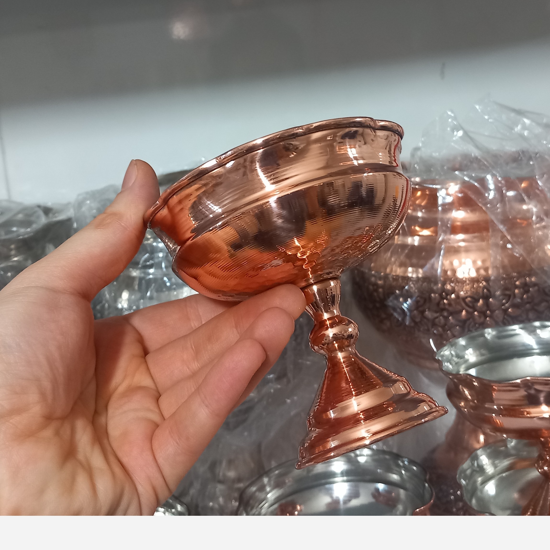شش عدد تنقلات خوری داخل قلع شده ی مسی چکش کاری شده تک پایه دور چین دار نانو شده و رنگ ثابت مناسب آجیل و یا هفت سین نوروزی و بستنی خوری ارسال رایگان