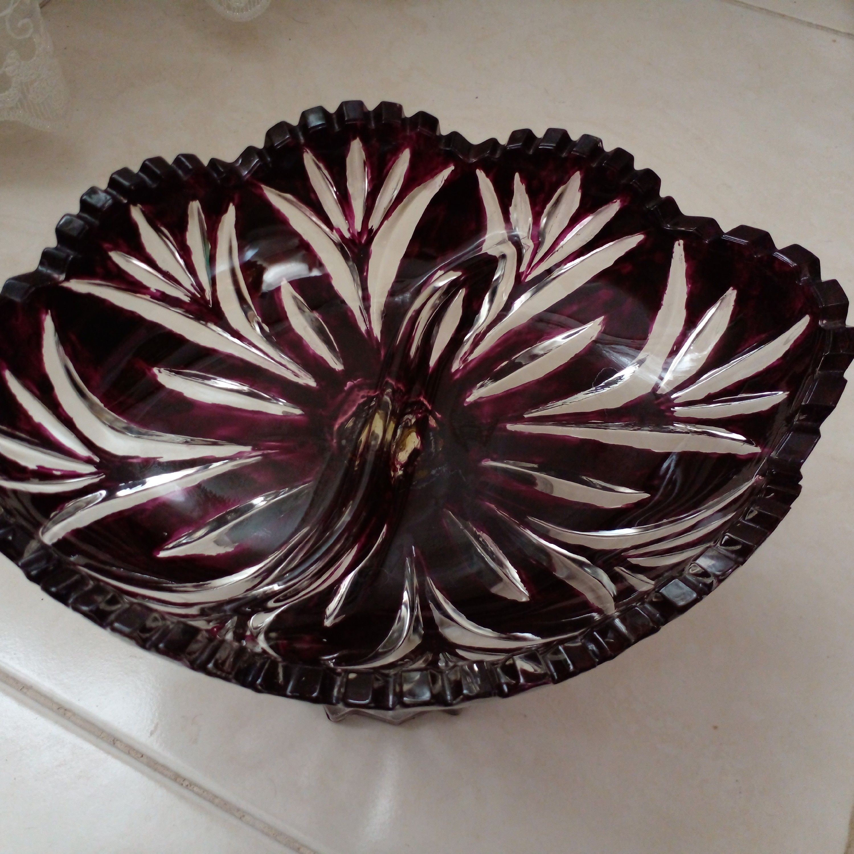 شکلات خوری بلور ایرانی رنگ شده با رنگ ویترا پایه دار اندازه ۱۷ در ۲۳ و ارتفاع با پایه ۱۴ سانت