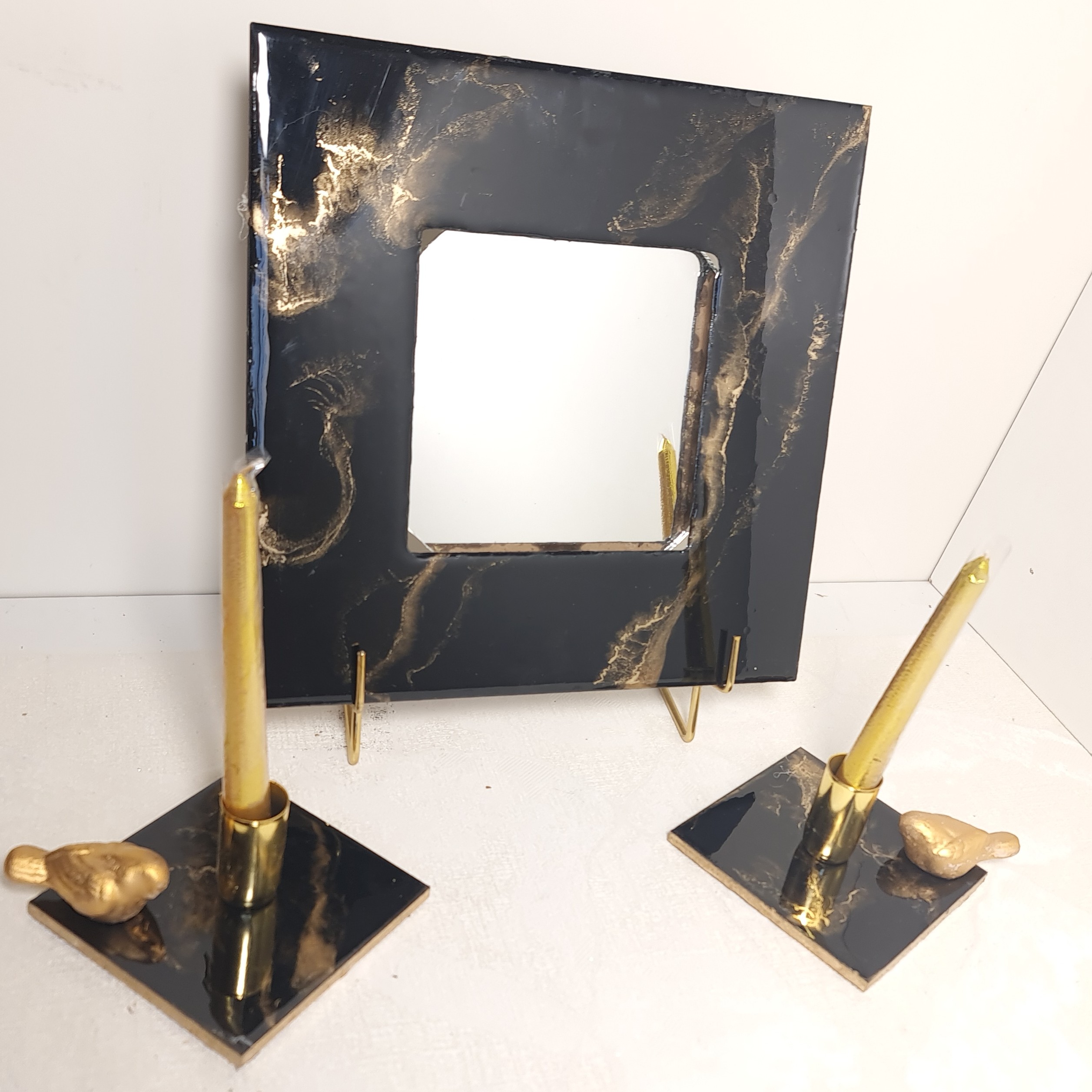 آینه و شمعدان طرح سنگ مشکی طلایی مبلمونسرا مدل 262449