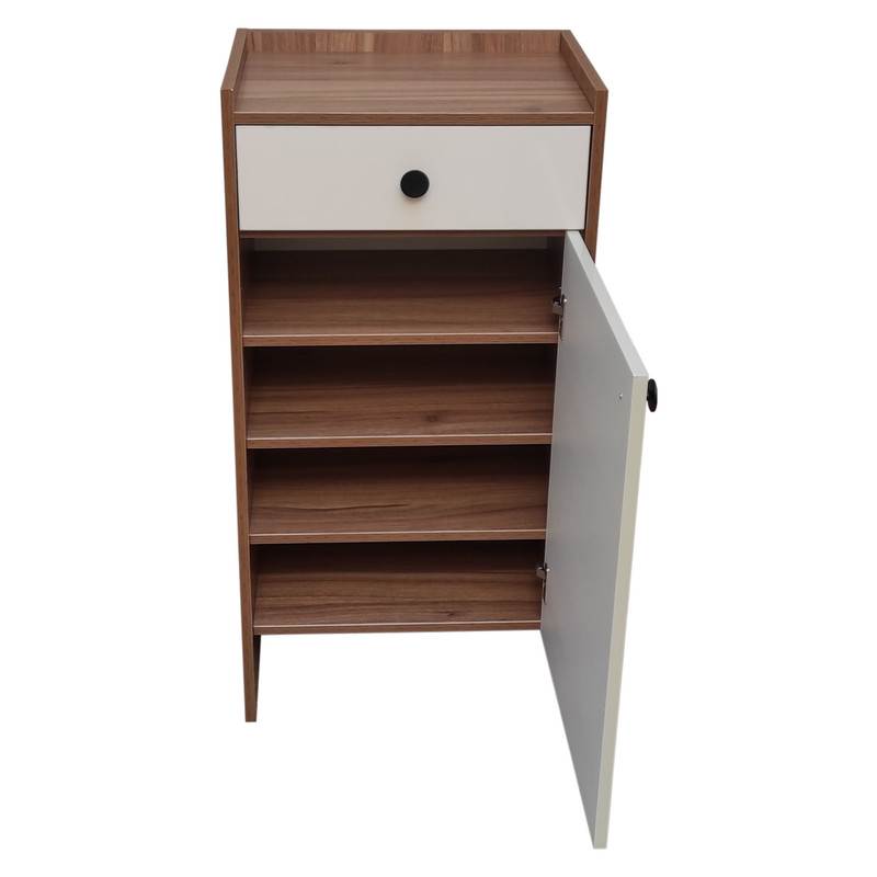 جنس محصول ملامینه و ضد خش میباشد که از بهترین یراق استفاده شده، لولا آرام بند و ریل ساچمه ای سه تیکه میباشد. قابل استفاده در آپارتمان و محل کار طراحی ساده و کاربردی دارد.