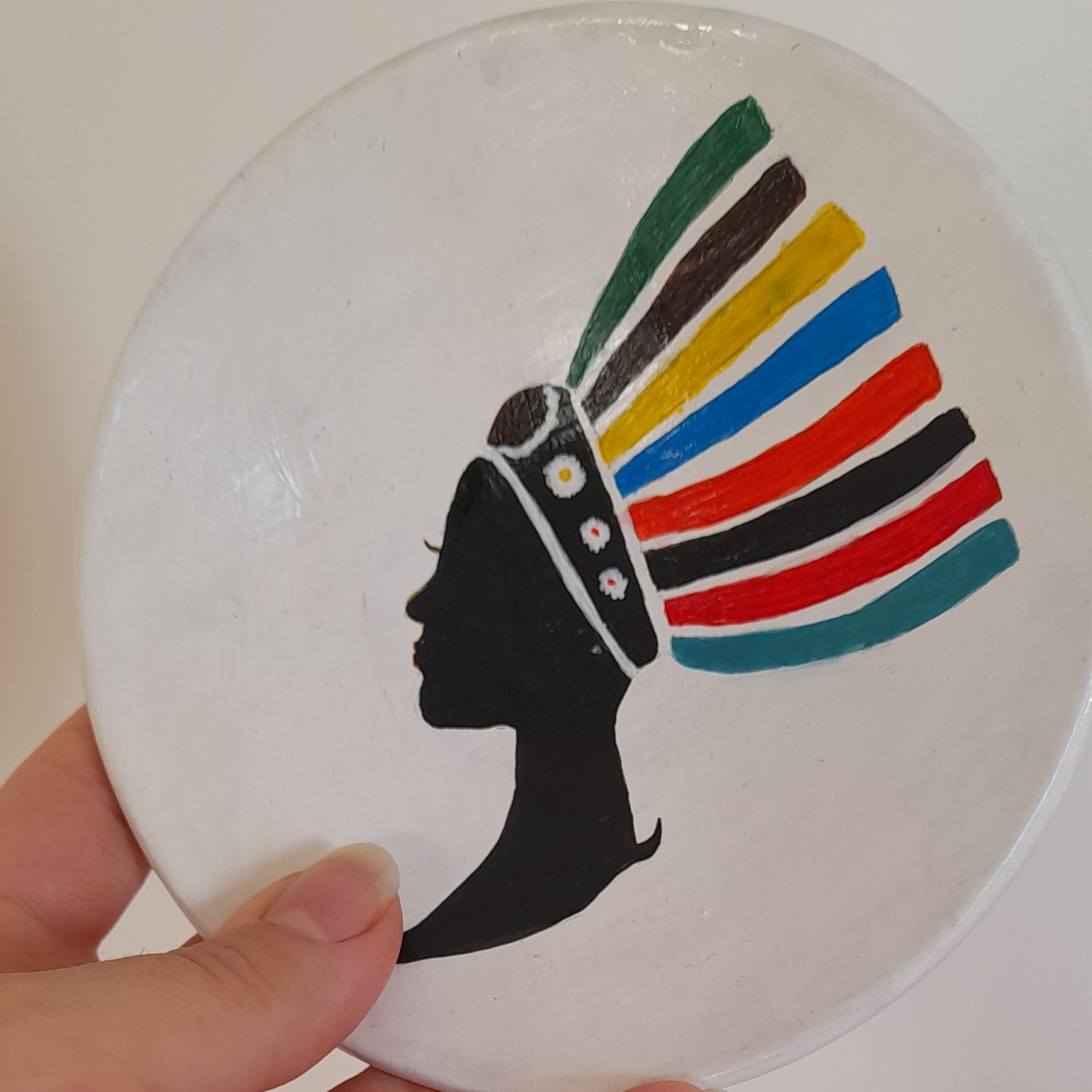 دیوارکوب طرح آفریقایی نقاشی کار دست با اکرولیک و قابل تمیز کردن با آب و دستمال نرم پشت کار دارای آویز برای نصب روی دیوار و امکان استفاده رو میزی