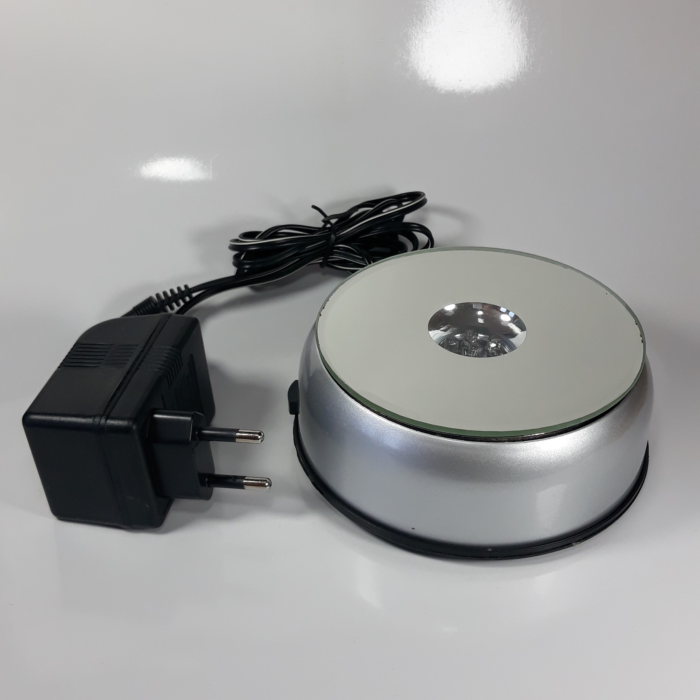 شب خواب و پایه برقی گردون مناسب برای نوردهی و چرخش وسایل تزئینی، دارای 7 عدد ال ای دی که در حالت های مختلف از زیر نورپردازی میکنه و می چرخه. این پایه با برق کار میکنه و میچرخه ، آدابتور داره و البته با باتری " نمیچرخه " فقط چراغ هاش روشن میشه. دارای کلید برای روشن و خاموش کردن. 3 تا باتری قلمی میخوره . طول عمر بالایی داره و مناسب اجسام تا وزن 800 گرم هستش.