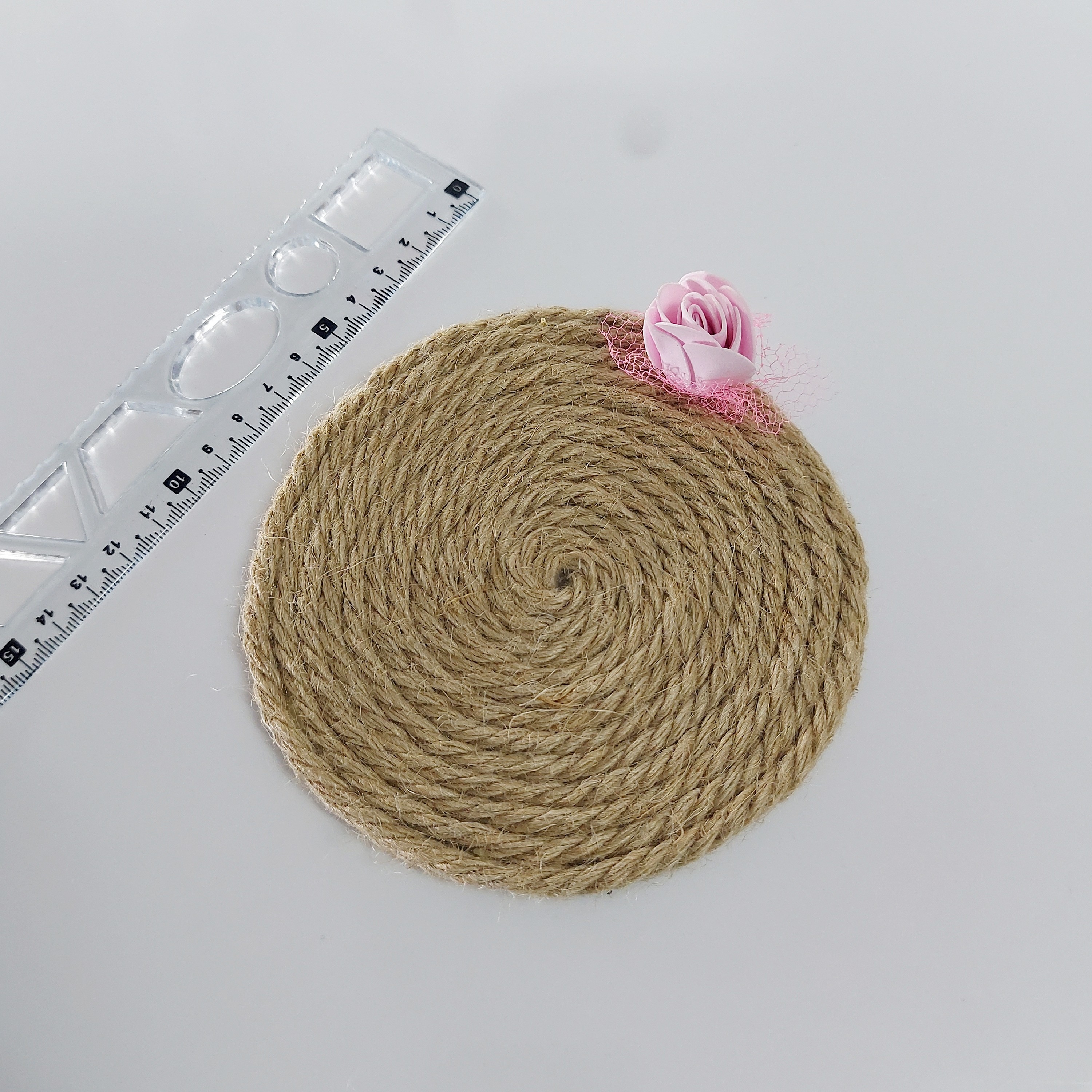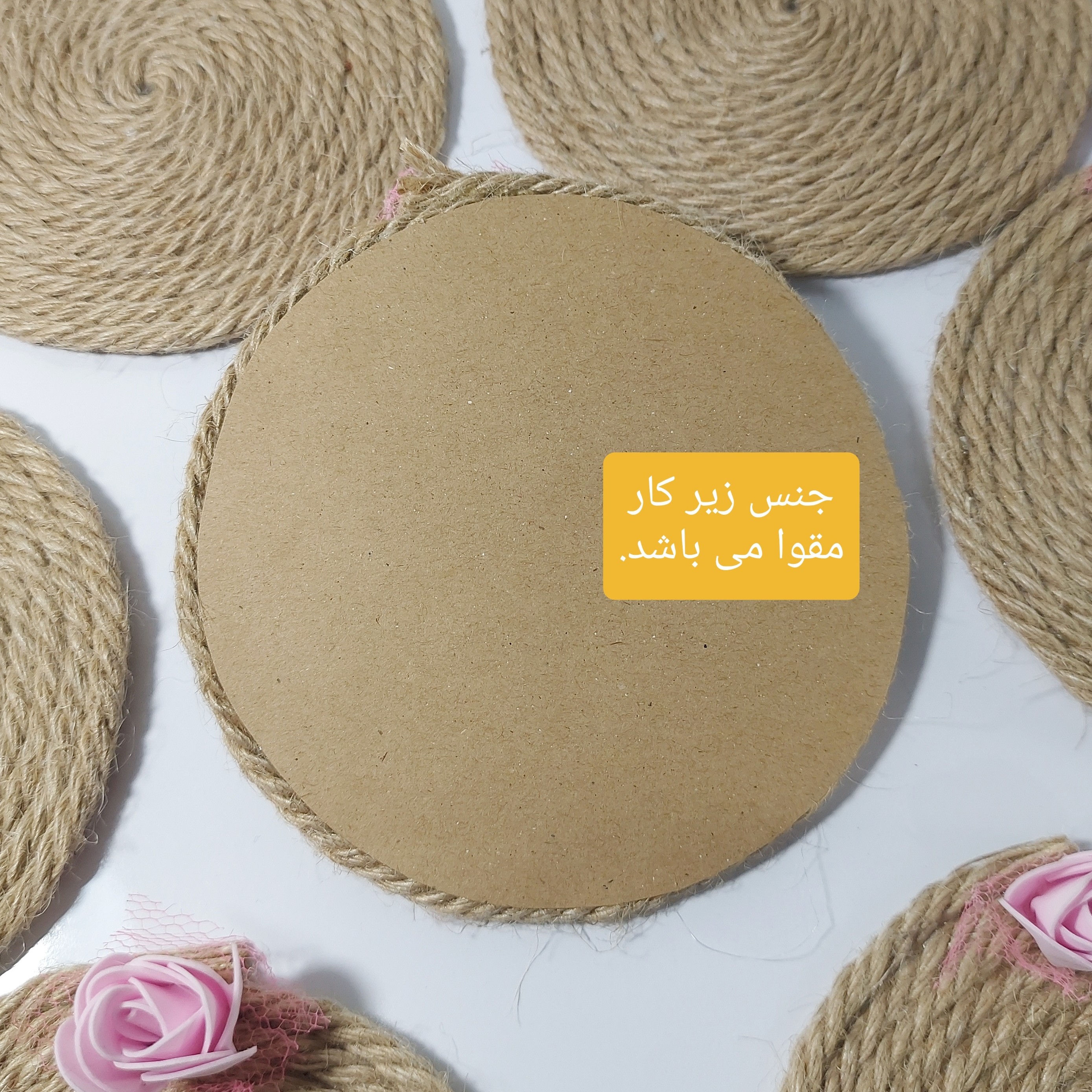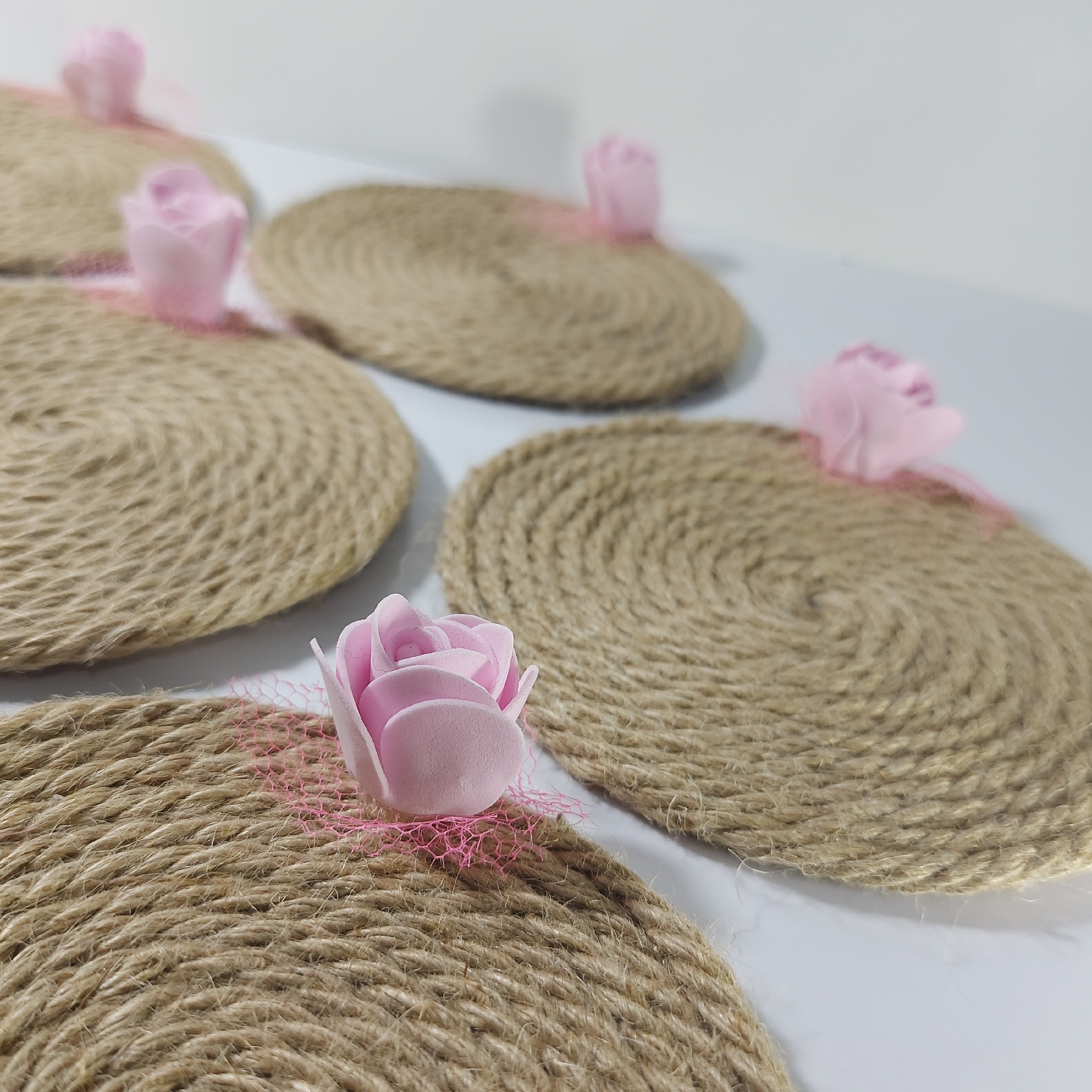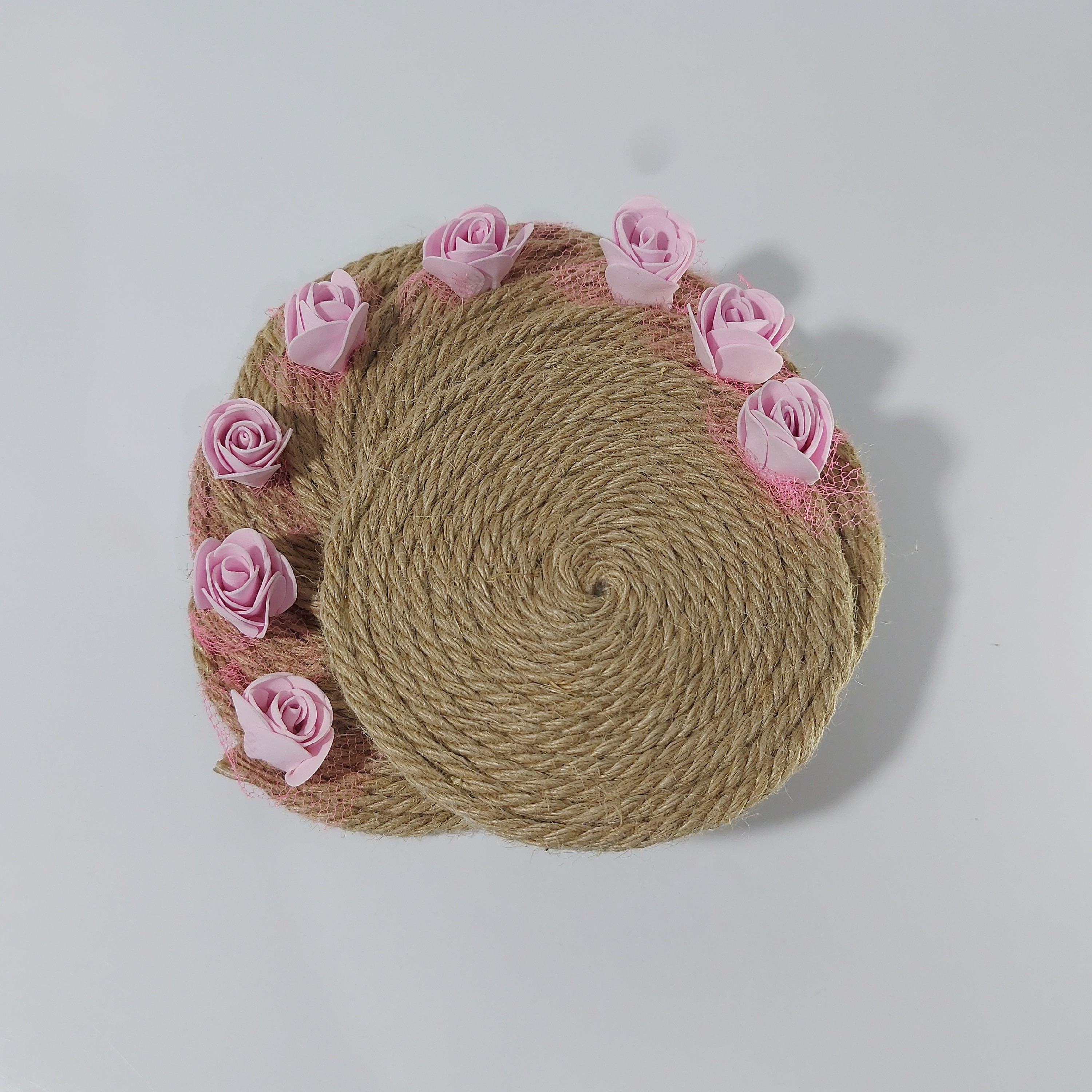زیرلیوانی کنفی با گل صورتی، با گلهای کوچک فومی کار شده، زیر کار مقوایی هست.