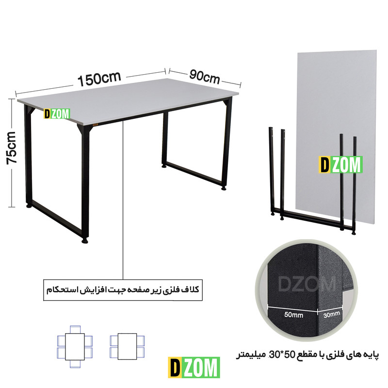 میز ناهارخوری دیزم DZom مدل مونتاژی LNC_asm_150×90_W محصولی مونتاژی، سبک، شیک و در عین حال جذاب و کارآمد از سری تولیدات دیزم میباشد. مشتری گرامی توجه نمایید محصولات برند دیزم (شماره ثبت 414013 اداره ثبت علائم تجاری) با کیفیت و بسته بندی اصلی تنها توسط فروشنده رسمی دیزم در دیجیکالا عرضه میشود، لطفاً از خرید کالای تقلبی از سایر فروشندگان خودداری فرمایید. این محصول بصورت سلف اسمبل (مونتاژی) تولید شده است. این میز حمل و نقل آسان و هزینه حمل مقرون به صرفه ای دارد. این میز از پایه های فلزی با مقطع 50x30 میلیمتر و رنگ رویه الکترو با ی و دوام بالا ساخته شده است. همچنین پایه های پیچی، قابلیت تنظیم نسبت به سطح زمین را دارد تا بهترین تراز جهت جلوگیری از تکان خوردن را ایجاد نماید. صفحه میز از جنس MDF درجه یک برجسته طرح چوب به رنگ سفید می باشد. این محصول با طول 150cm، عرض 90cm و ارتفاع 75cm عرضه می شود. به این نکته توجه شود که تنوع رنگ انتخابی کالا تنها مربوط به رنگ پایه های فلزی میباشد.