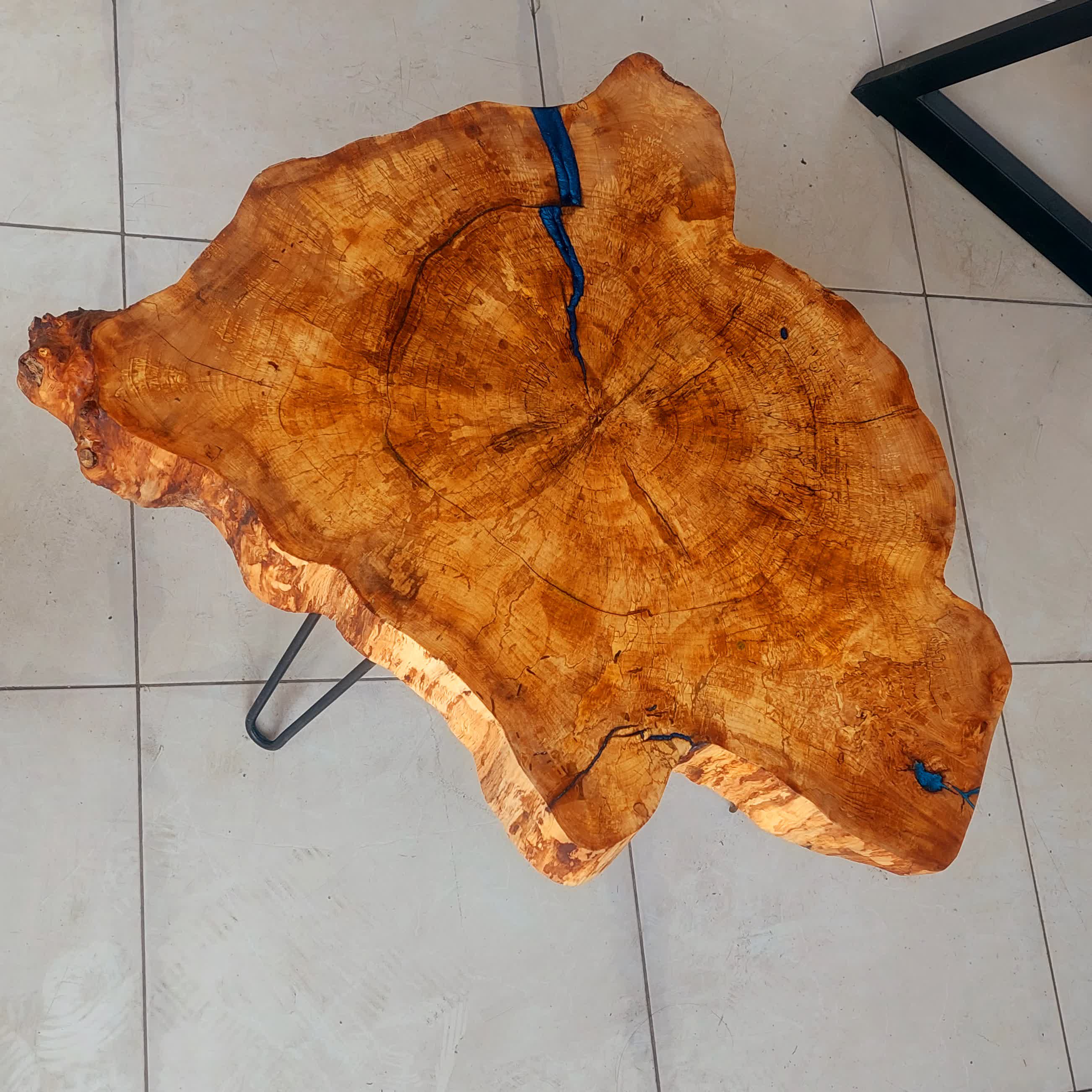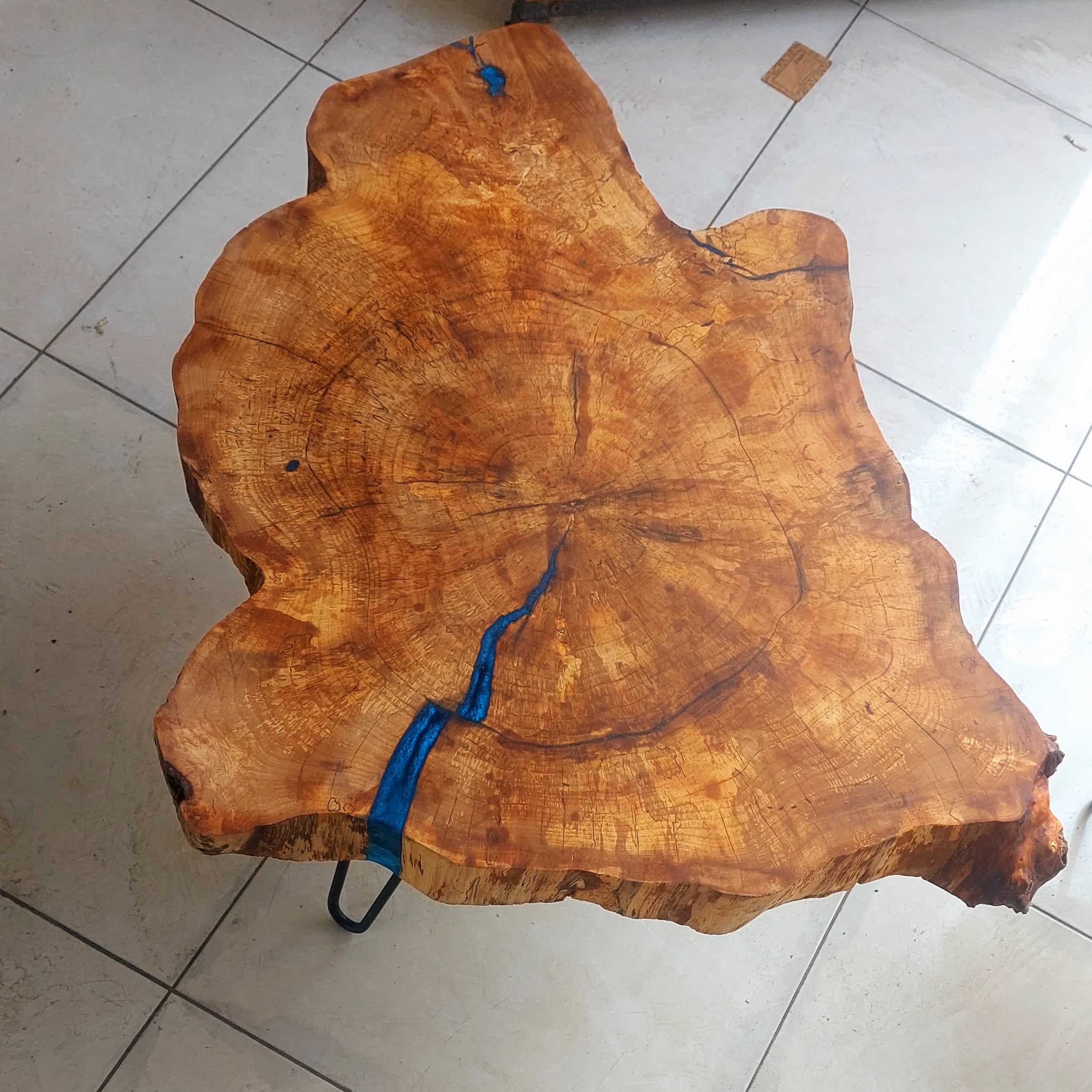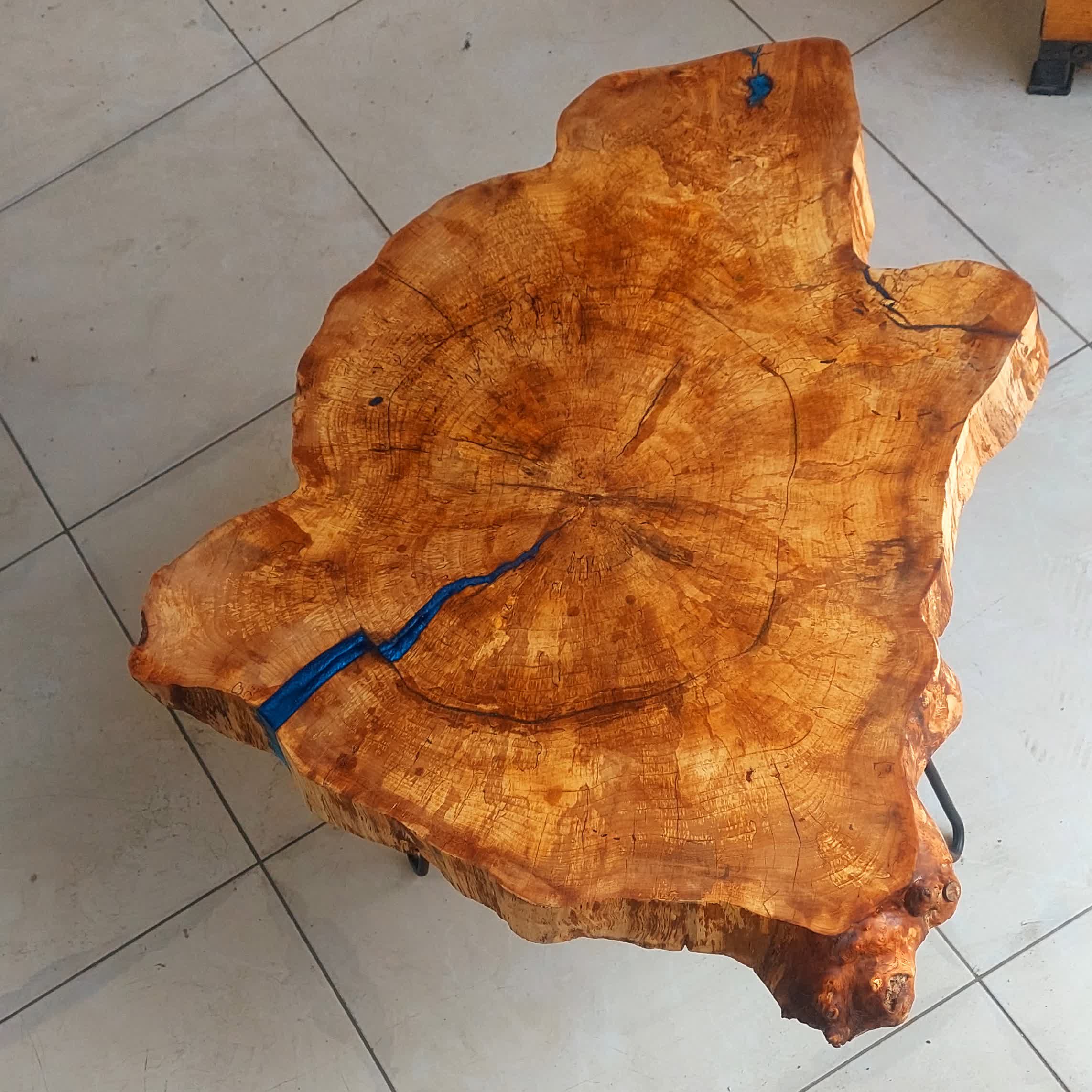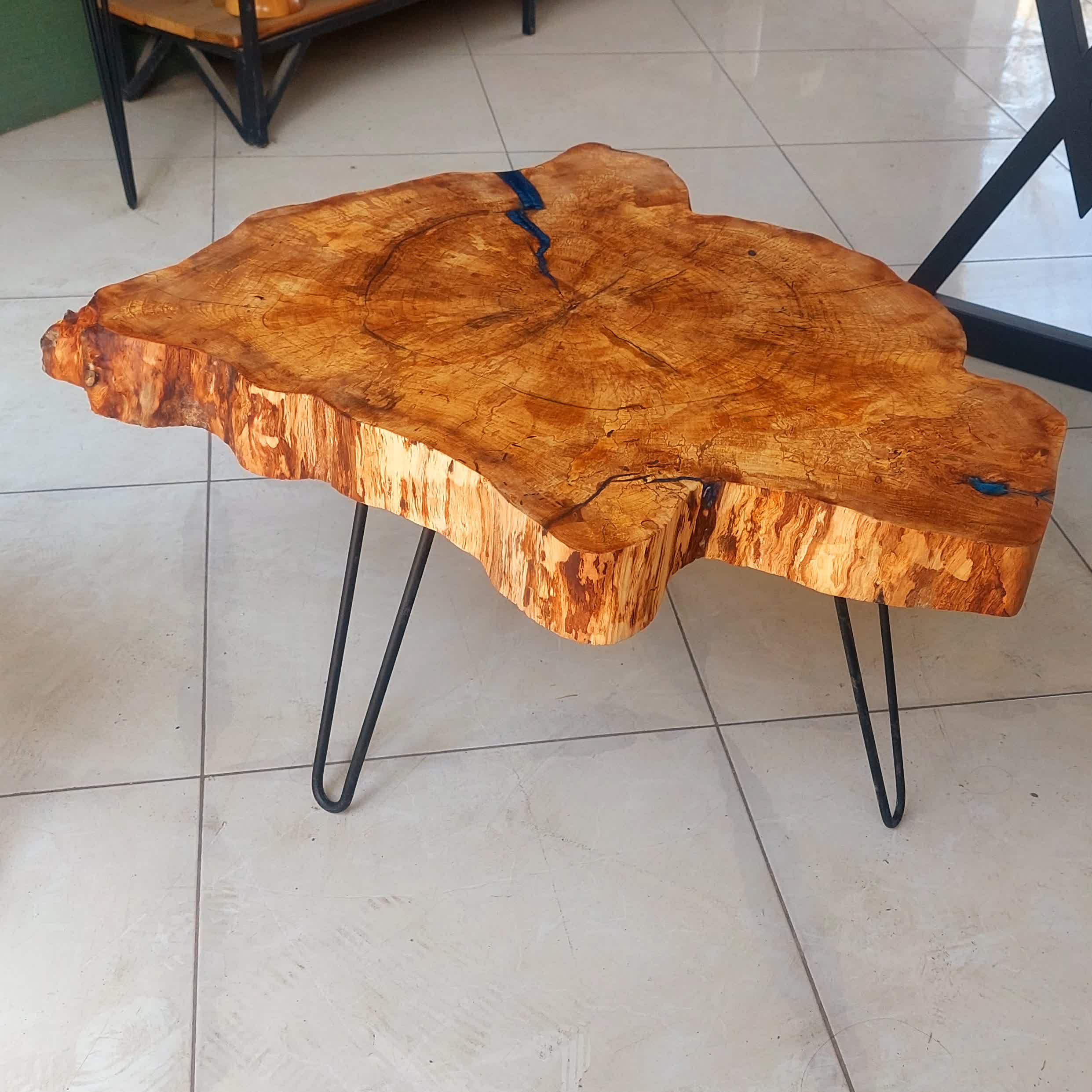 میز جلومبلی و پذیرایی روستیک با چوب بسیار خوش نقش و رنگ افرا با پایه های فلزی، قابلیت تغییر ارتفاع پایه ها در صورت درخواست مشتری، به ابعاد صفحه میز 70*50 و ارتفاع 40، با پوشش روغن مخصوص آبگریز