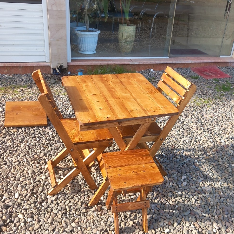 میز و صندلی تاشو چوبی دو نفره .این محصول با چوب درجه یک روسی ساخته شده و دارای کیفیت بالایی است ..و این محصول داریه سه لایه رنگ کاری و جلا شده که خاصیت آب گریزی پیدا کرده است
