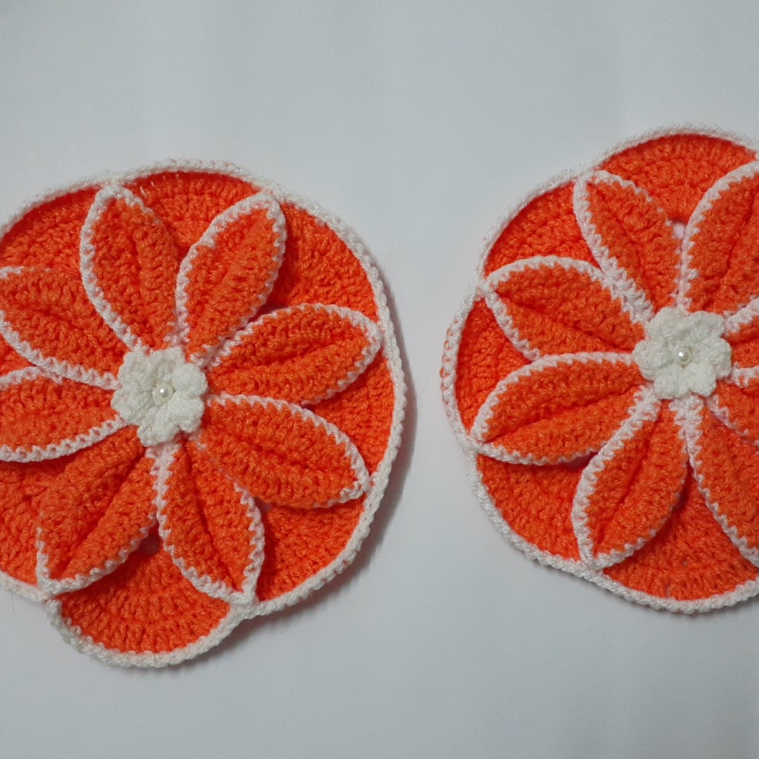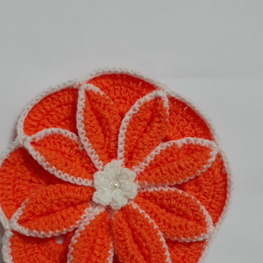 دستگیره بافتنی طرح گل بافته شده با قلاب شماره ۳ باکیفیت بالا رنگ طبق سلیقه مشتری بافته میشود