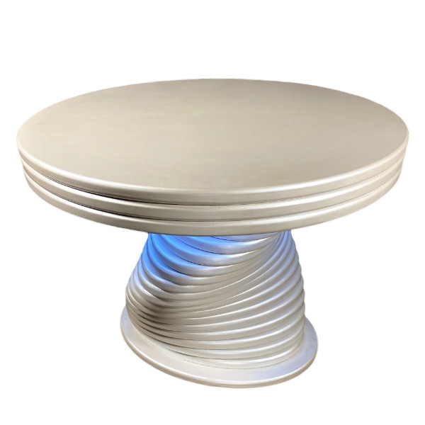 وجود میز ناهارخوری در هر خانه ای الزامیست، مخصوصا میزهای ناهارخوری که طرحی مدرن و خاص داشته باشند تا فضای خانه را زیباتر جلوه دهند، میز ناهارخوری مدل D32 به صورت گرد و 6 نفره می باشد که با پایه مارپیچ جذاب ست میز زیبایی چشم ز و منحصر به فرد به منزل شما می دهد.همچنین نور مخفی زیر میز زیبایی این میز را دوچندان کرده است، صفحه این میز با بست های بسیار محکم به پایه میز وصل می شوندو همچنین در استفاده طولانی مدت دچار خمیدگی و یا انحنا نخواهد شد. پایه های این میز به صورت راحت از صفحه میز جدا شده و جهت جابجایی بسیار مناسب میباشد. سایز میز 130 در 130 و دارای ارتفاع استاندارد 75 میباشد.این میز علاوه بر آشپزخانه و سالن پذیرایی، برای تالارها رستوران ها و یا سالنهای غداخوری مناسب میباشد. این میز را به راحتی میتوان با یک دستمال مرطوب تمیز کرد