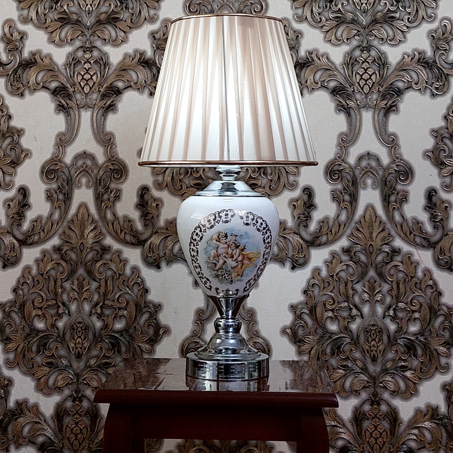 مدل فرشته نقره ای ارتفاع 55 سانت قطر شید 28 سانت جنس بدنه سرامیک مبلمونسرا مدل 234049