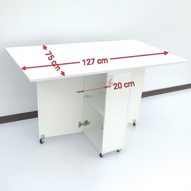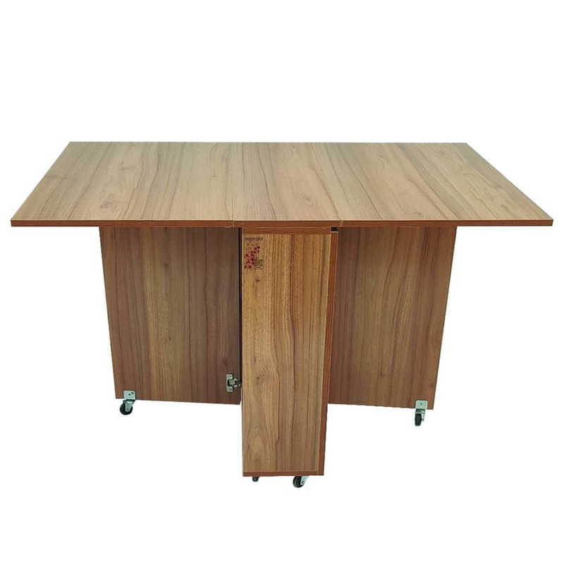 میز تاشو موگن فو مدل G710 میزی بسیار خوش ساخت و با کیفیت و کاربردی میباشد و این میز با طراحی بسیار دقیق و هوشمندانه با روشی ساخته شده است که هیچ جای پیچی در هیچ یک از بخشهای نمایان آن دیده نمیشود. استفاده از لولاهای و همچنین چرخ های با کیفیت با بدنه فلزی و ر شدن تمام بخش های میز و چند مرحله کنترل در حین ساخت ، باعث ساخت محصولی با دوام شده است. جنس بنده میز لترون پویا میباشد که بهترین لترون موجود در بازار بوده و تمام قست های آن با ر پی وی سی پوشیده شده است. ارتفاع رویه میز 75 سانت بوده که استاندارد رویه میزها میباشد و ابعاد رویه بعد از باز شدن 127 در 75 بوده که در هنگام بسته شدن عدد 127 به حدود 30 سانت کاهش میابد. این میز را میتوان به عن میز نهار خوری، میز مطالعه، میز طراحی و یا میز کار استفاده کرد.فضای قسمت پایین با یک طبقه و در هر دو طرف فضای مناسبی را برای قرار دادن وسایل در اختیار شما قرار میدهد.