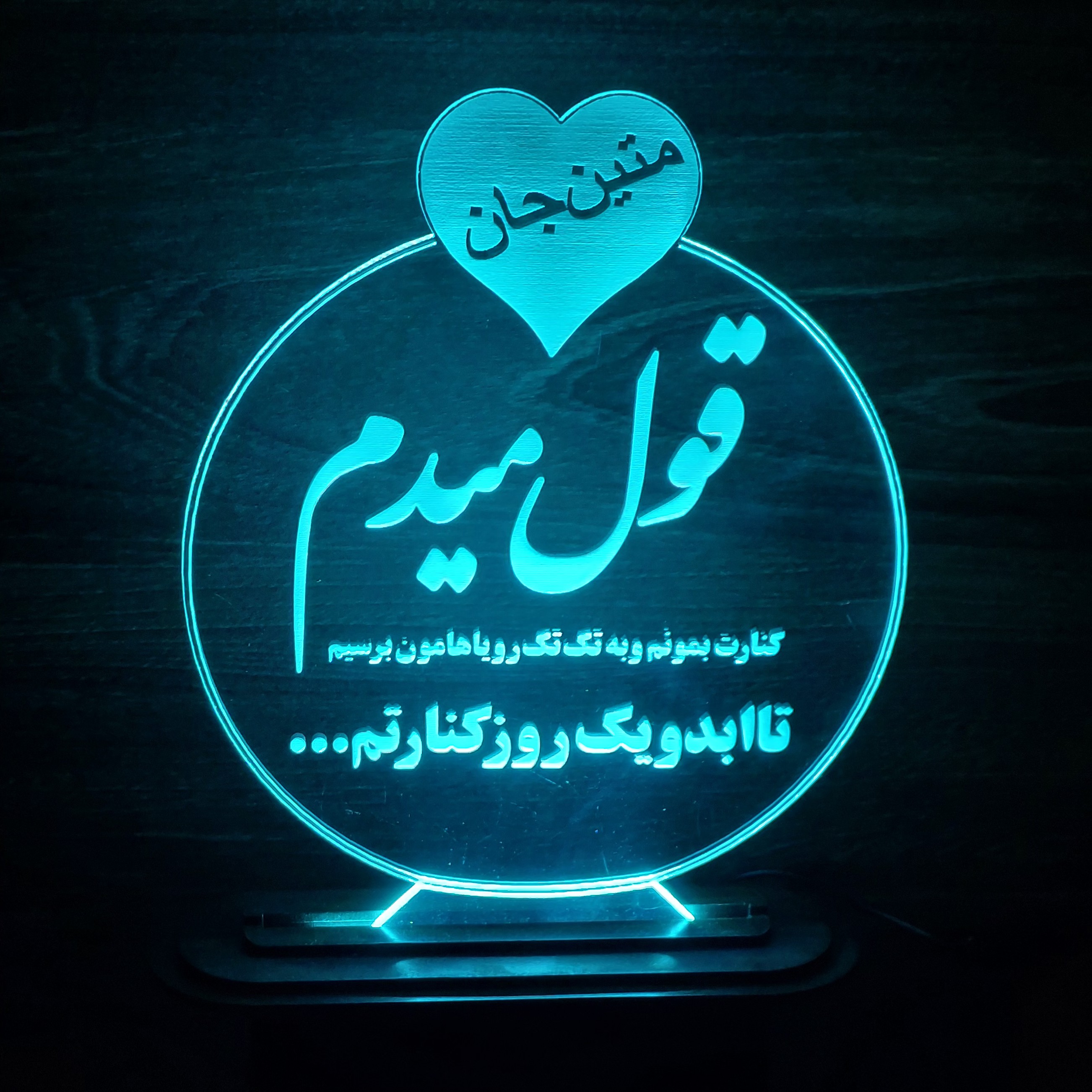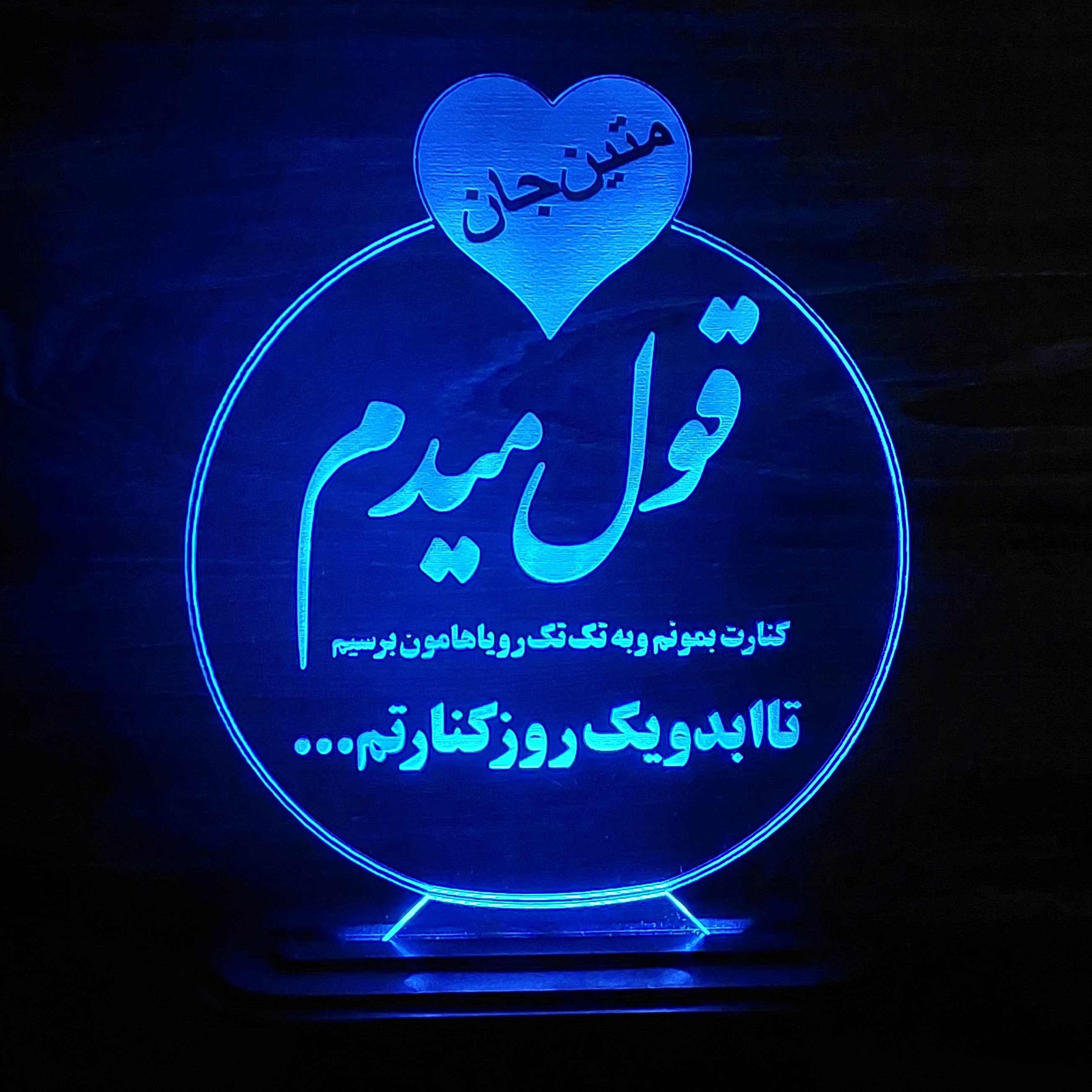 هر متنی که خودتون بخواید داخل این چراغ خواب می نویسیم. رنگ نورش با سلیقه و انتخاب شماست.