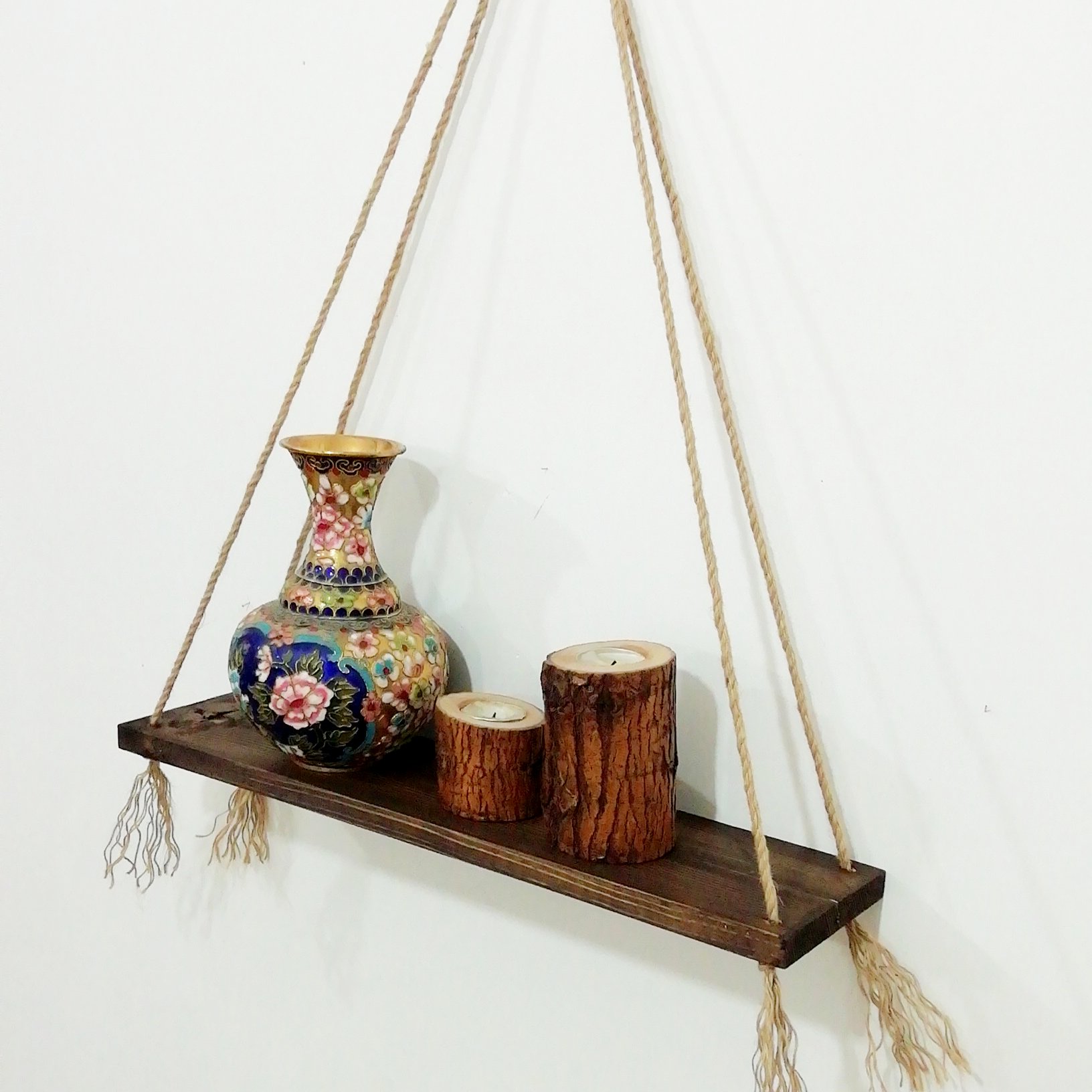 این شلف چوبی بسیار زیبا که تلفیقی از چوب و کنف است هر مکان از منزلتان نصب شود چشم ها را به خود خیره می کند.به سادگی هر چه تمام تر با یک میخ به دیوار آویزان می شود و تحمل اوزان بالا را دارد.با قرار دادن کتاب یا گلدان یا انواع دکوری های منزلتان به محیط اطراف خود زینت ویژه ای خواهد بخشید پهنای 15 سانتی این شلف به شما این امکان را می دهد که به راحتی به عنوان یک کتابخانه ی چوبی از آن استفاده کنید.