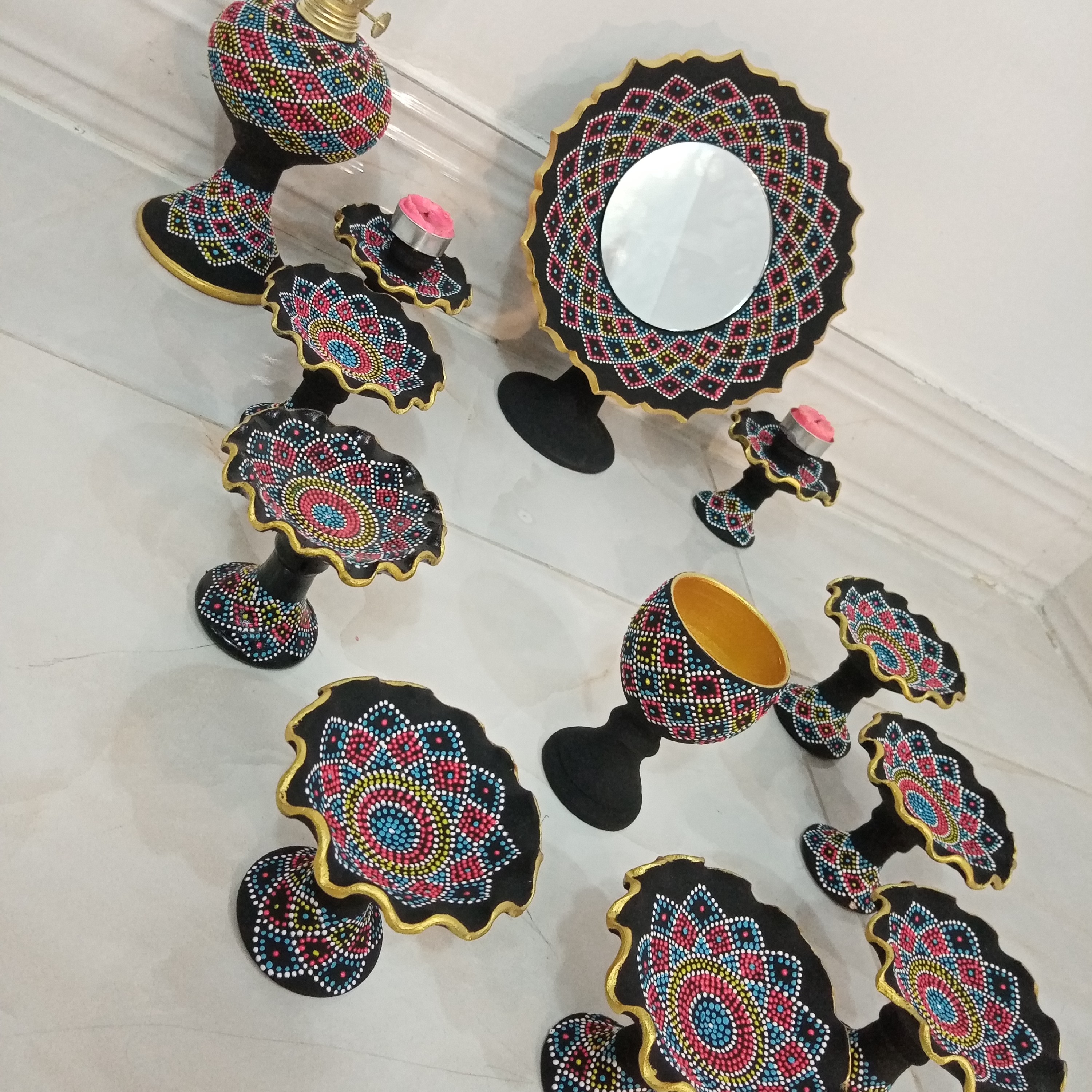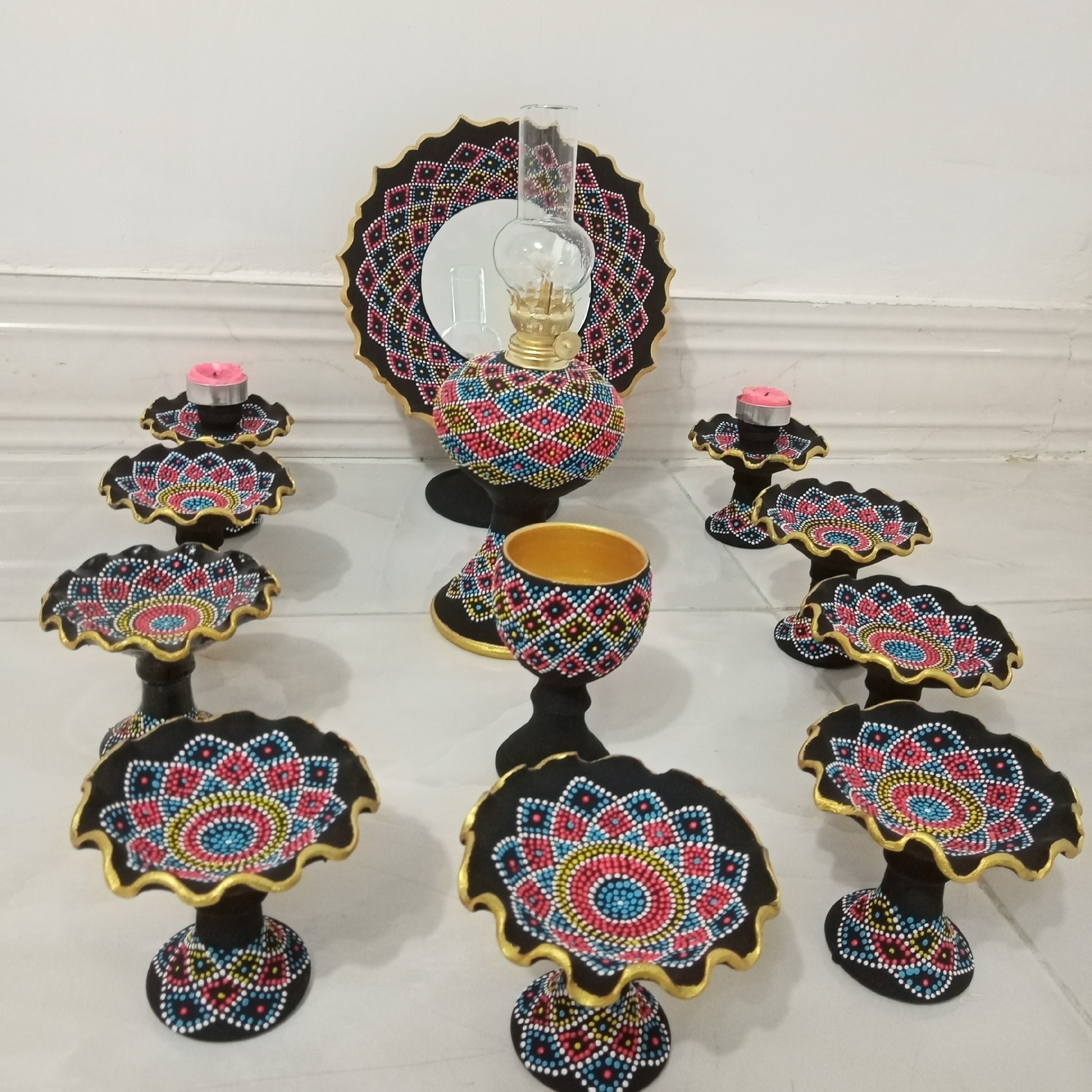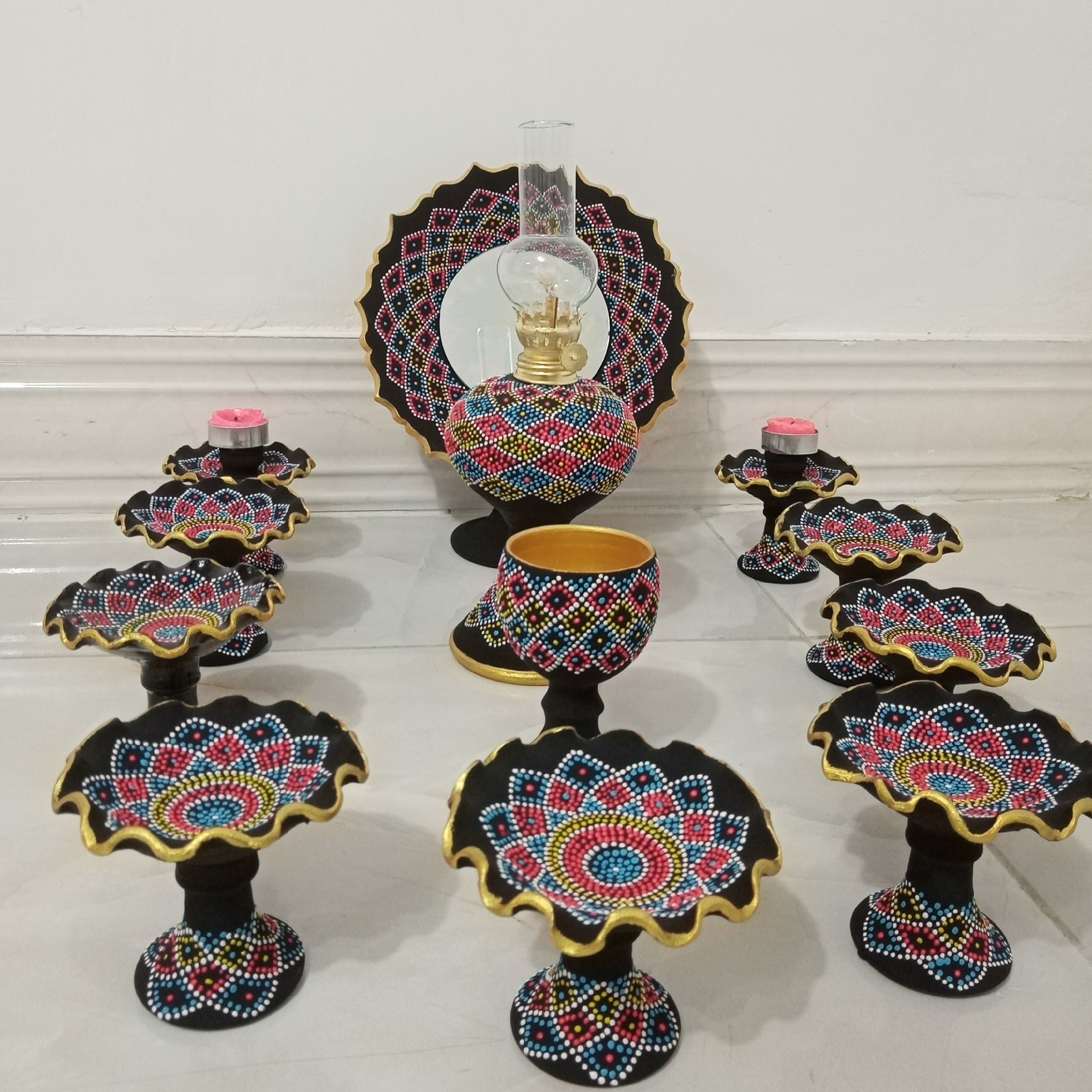 هفت سین سفالی نقطه کوبی شده، قابل شستشو، قابل سفارش در طرح و رنگ دلخواه مبلمونسرا مدل 259514