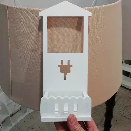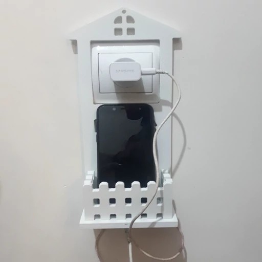شلف جای موبایل کلبه سایز ۲۸ * ۱۳ سانت جنس pvc قابل شست وشو نگهدارنده شارژر موبایل دارای محفظه نگهداری موبایل دارای حفره مربعی شکل جهت آویز نمودن به پریز