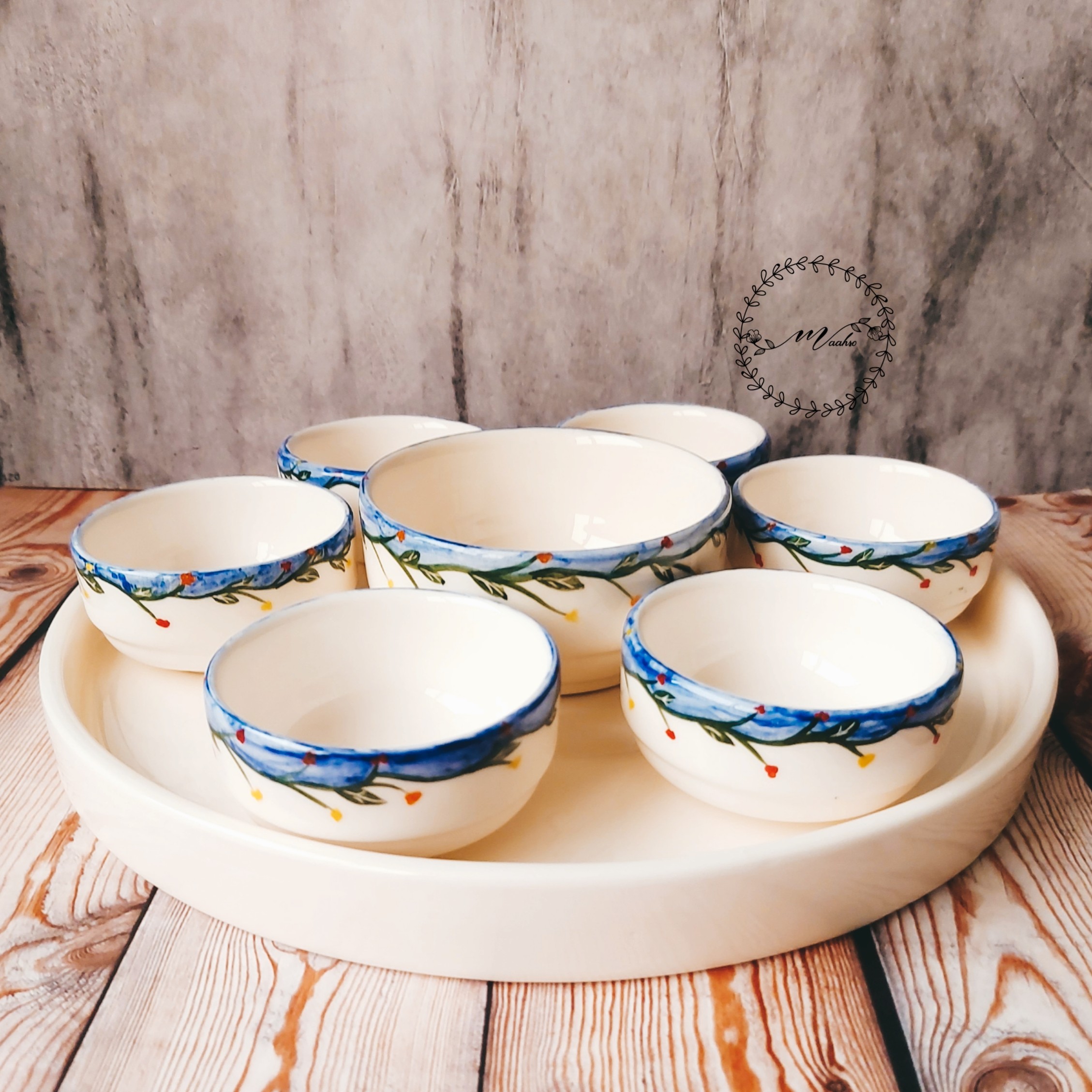 ست هفت سین و مزه خوری 8 تکه سرامیکی طرح لاجورد مبلمونسرا مدل 278491