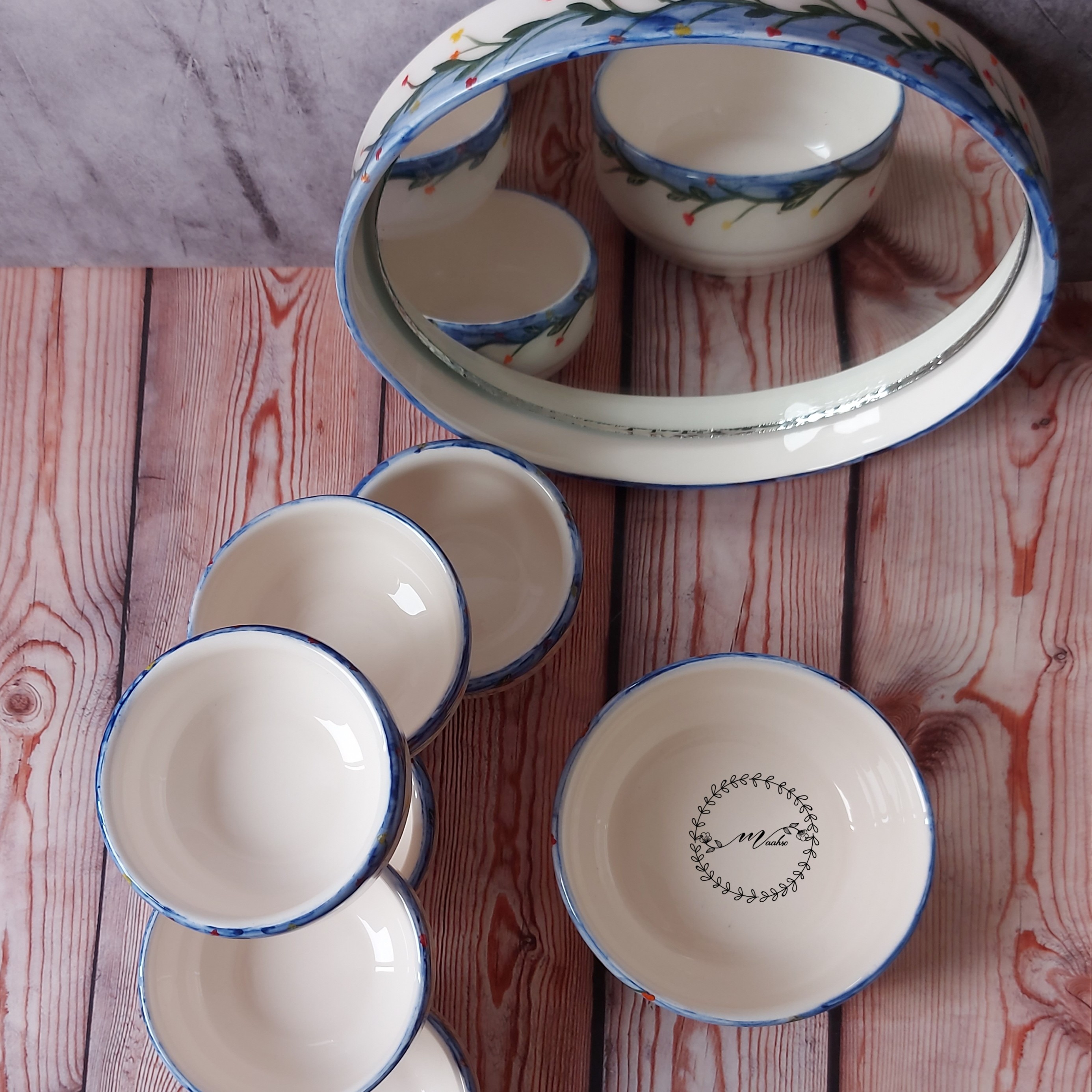 6عدد کاسه 8 سانت/یک عدد کاسه 13 سانت./آینه 20 سانت/