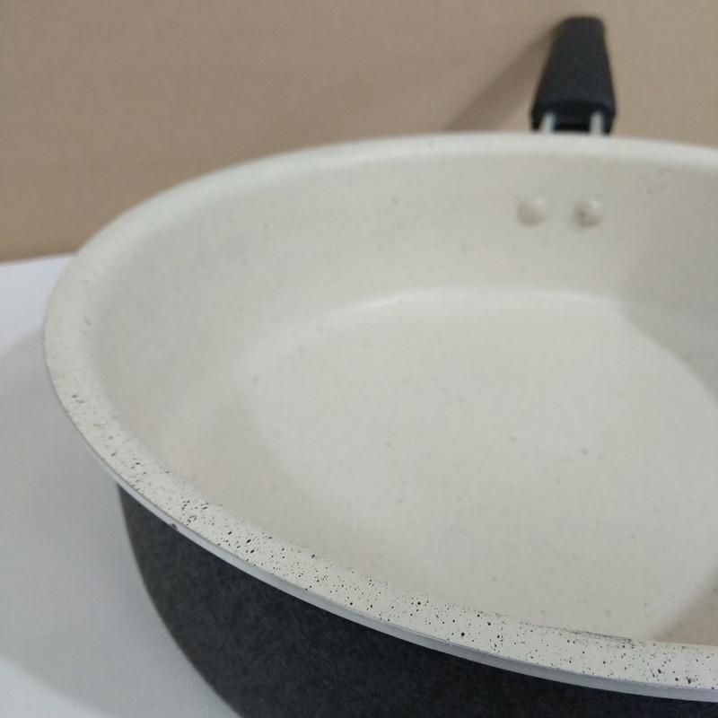 تابه تک دسته از جنس آلومینیوم و با رش باکیفیت بالا ساخته شده و یک دسته فلزی با رش نسوز بسیار عالی بر روی این تابه قرار دارد . ابعاد این تابه 26x26x8 سانتیمتر و وزن آن 600 گرم میباشد