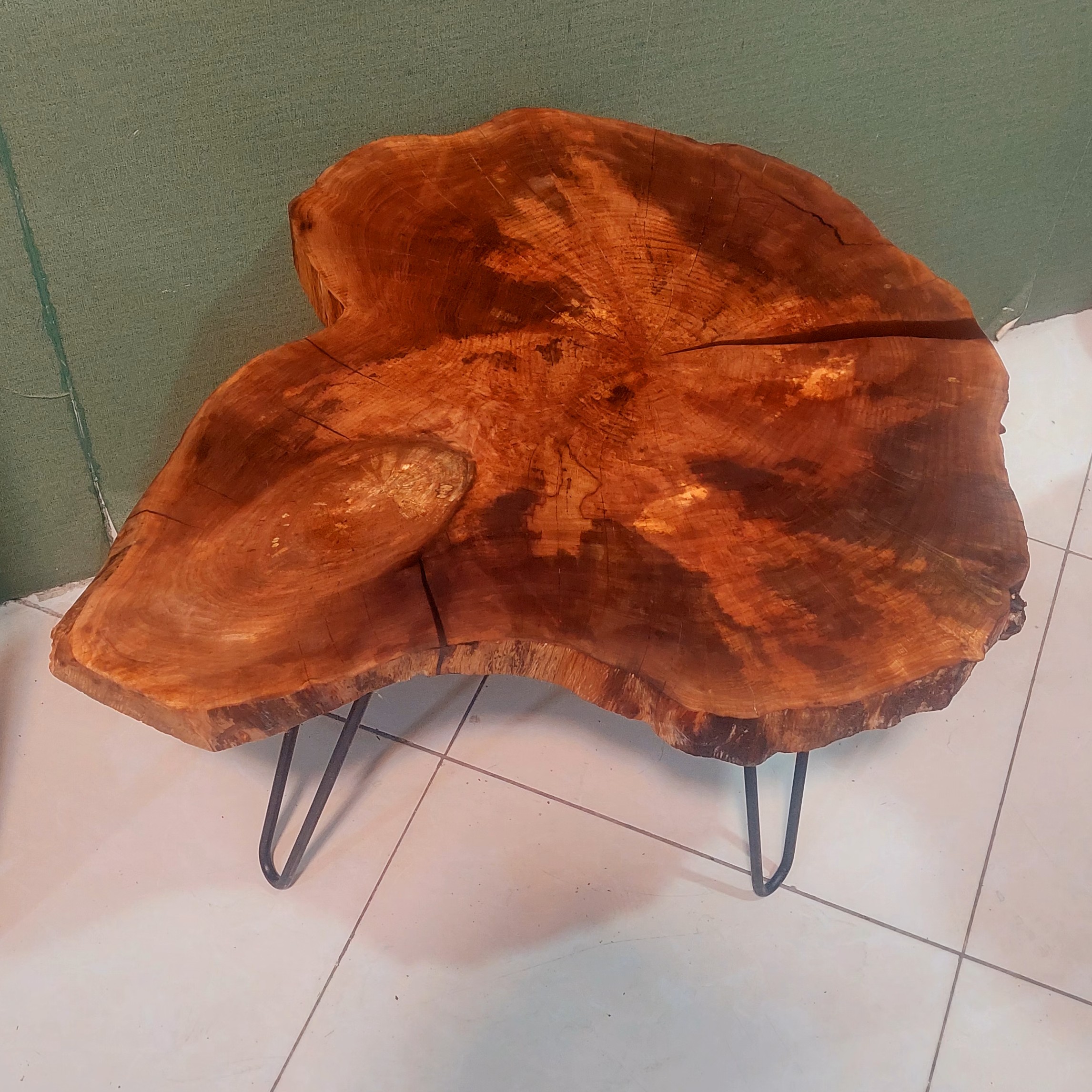 میز جلومبلی روستیک چوب افرا با پوشش روغن گیاهی مخصوص آبگریز و پایه های فلزی رنگ کوره ای مشکی به ابعاد حدودی 50*60 و ارتفاع 45سانت مناسب برای میز جلومبلی و پذیرایی