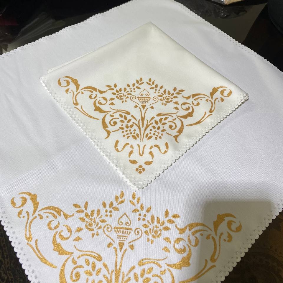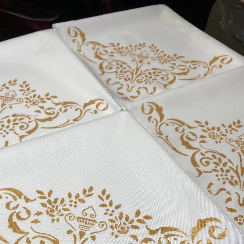 دستمال سفره سفارشی طرح طبق ظروف مشتری کار با دست و رنگ اکرولیک قابل شستشو و تضمین ثبات رنگ برای این کار دستمال سفره توسط مشتری ارسال شده و طرح توسط من انجام شده