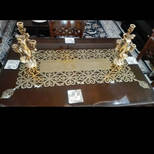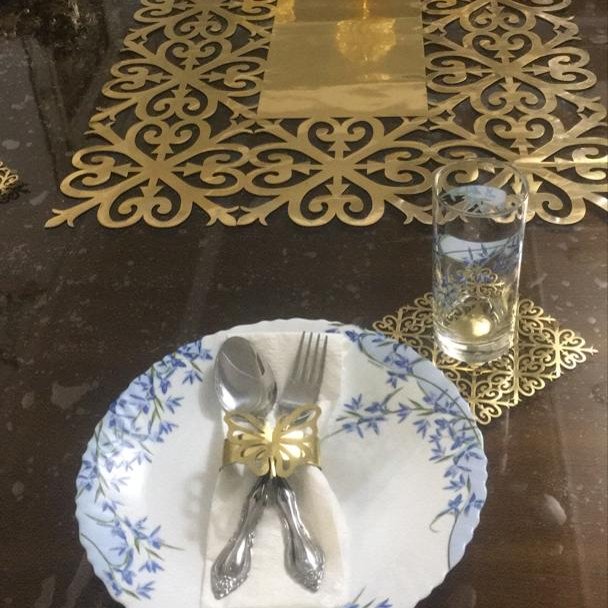 با سلام، زیربشقابی جنس چرم در رنگ بندی طلایی و نقره ای بدون اکلیلی و بژ اکلیلی و نقره ای اکلیلی موجود است. هر عدد زیربشقابی 42000 تومان و زیرلیوانی 4 هزارتومان، حلقه دستمال دونه ای 3 تومان پک 6 عددی 300 تومان