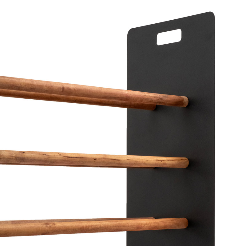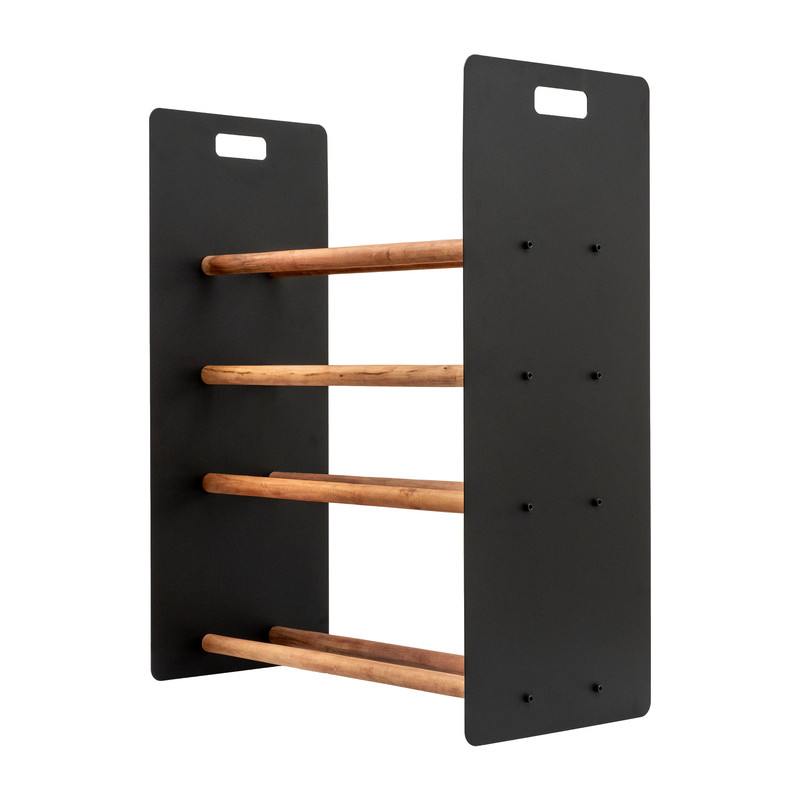 جاکفشی «پازَن» از ۸ قطعه چوب چنار با طول ۷۰ سانتیمتر ساخته شده که توسط پیچهای آلن به دو صفحه فلزی مقاوم متصل میشوند. تمامی قطعات مورد نیاز بههمراه یک آچار آلن در بستهبندی محصول قرار دارد و مونتاژ آن بهراحتی توسط شما انجام میگیرد. این طراحی هوشمندانه، حملونقل جاکفشی را بسیار ساده و بیدردسر کرده است. جاکفشی رُک فضای کافی برای نگهداری ۹ جفت کفش کتانی و ۳ جفت بوت یا نیمبوت را در اختیار شما قرار میدهد و انتخابی کاربردی و شیک برای نظمبخشی به فضای ورودی منزل یا محل کار شماست.