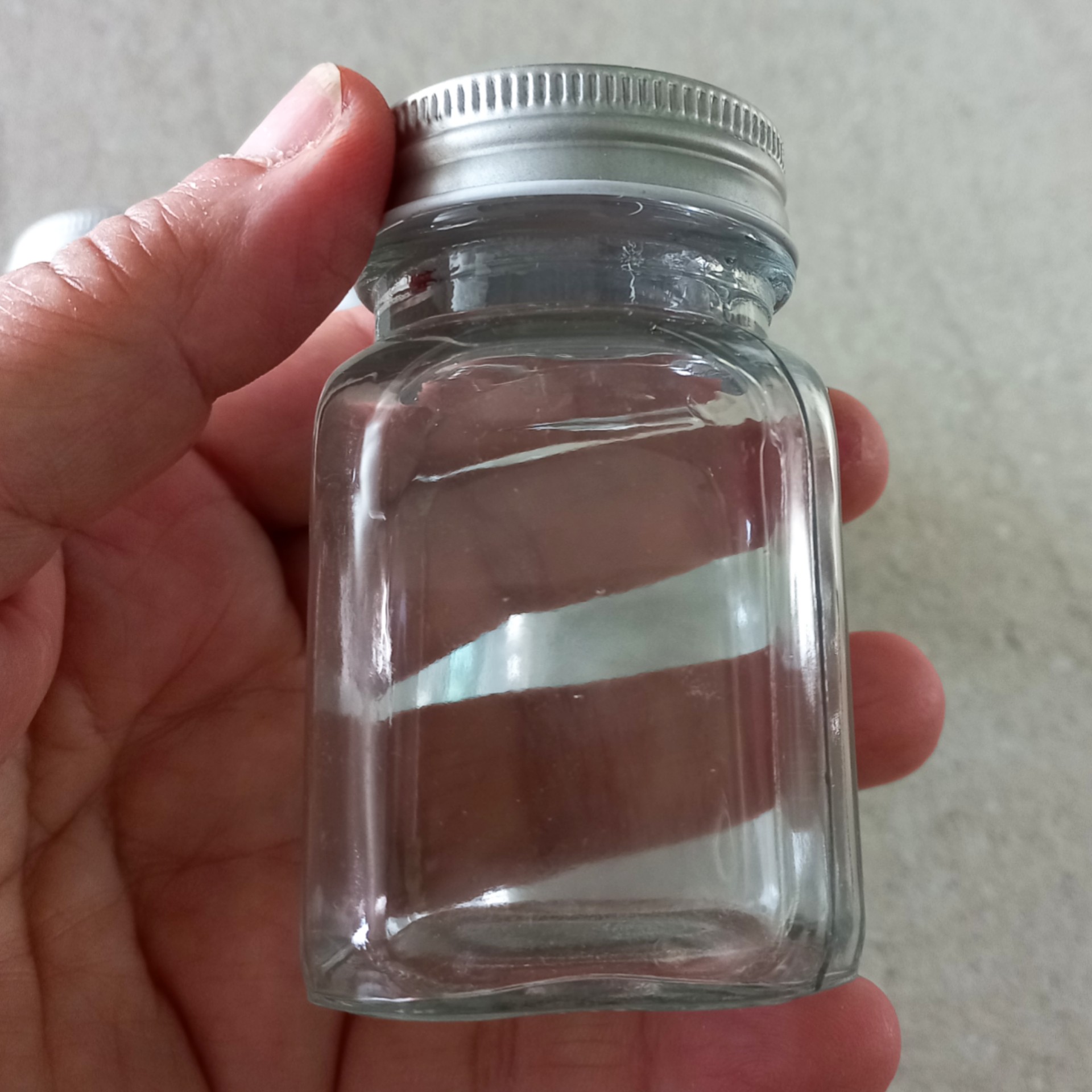توجه : این محصول فاقد درپوش سیلیکونی ادویه پاش است . جا ادویه شیشه ای مک کارتی چهارگوش با درب کانتینری به رنگ تقره ای . مناسب ادویه ها و چاشنی ها . دمندش و گیفت ولنتاین و بانکه ادویه ای سایز 4 با ارتفاع 8سانت و کف 4.5 سانت. حجم 60 گردم ادویه پودری . شیشه این محصول ایرانی و شفاف است و گاهی ممکن است حباب ریزی در برخی شیشه ها موجود باشد. برای نام گذاری این محصول لیبل خام و ماژیک ضد آب در غرفه موجود است .