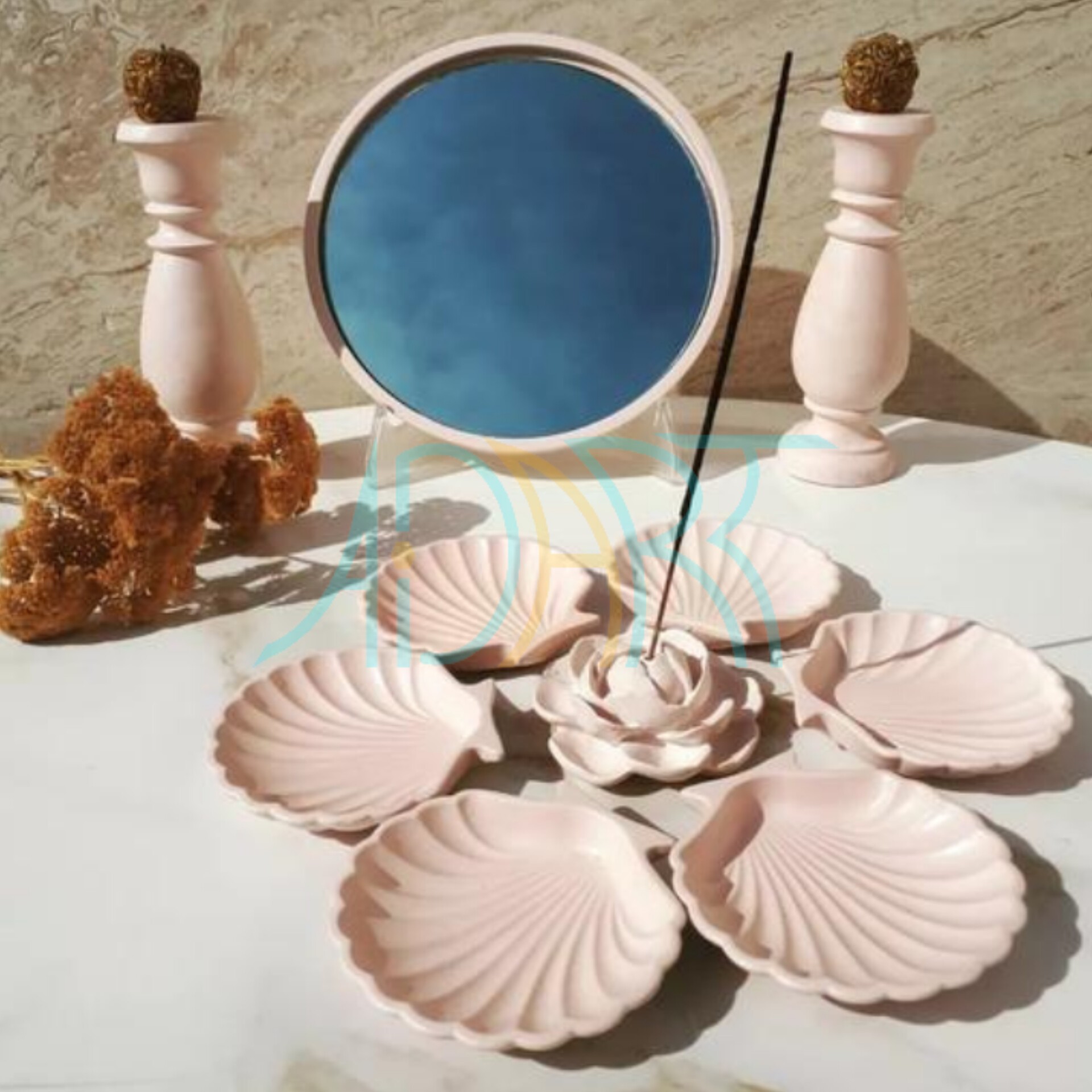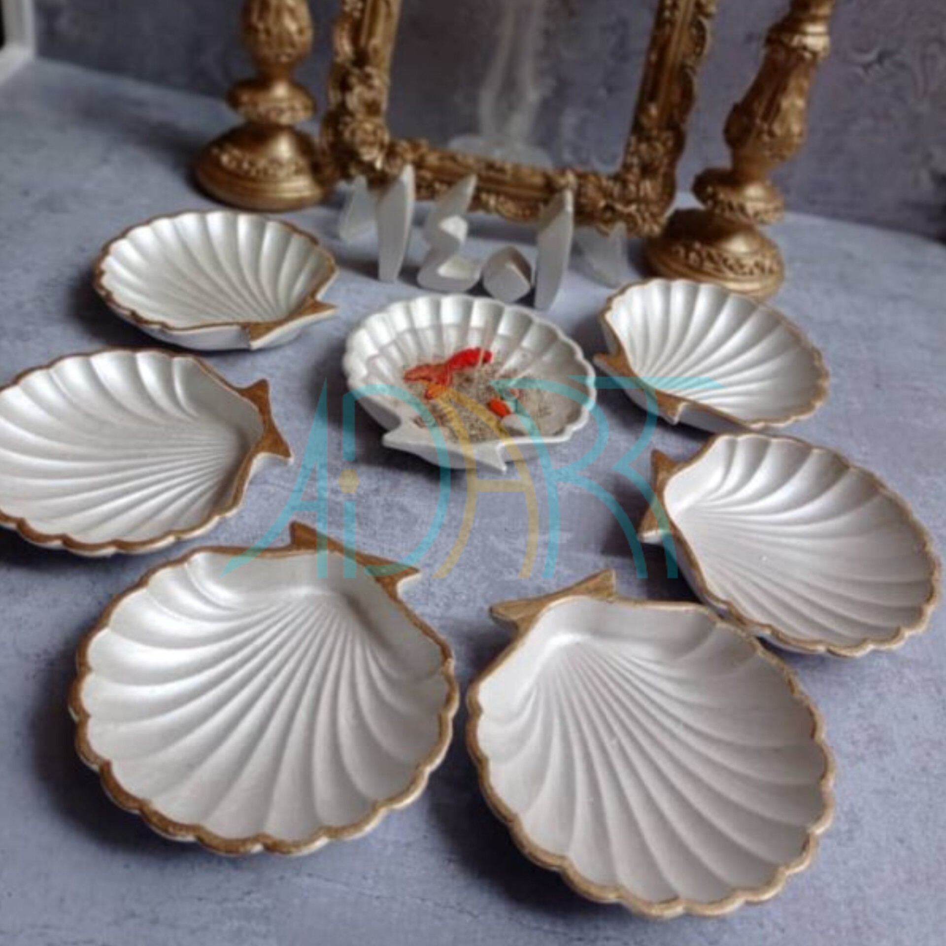 هفت سین طرح صدف مجموعه 8 عددی شش ظرف جاسبزه پایه آینه سنگ مصنوعی بتنی مبلمونسرا مدل 259363