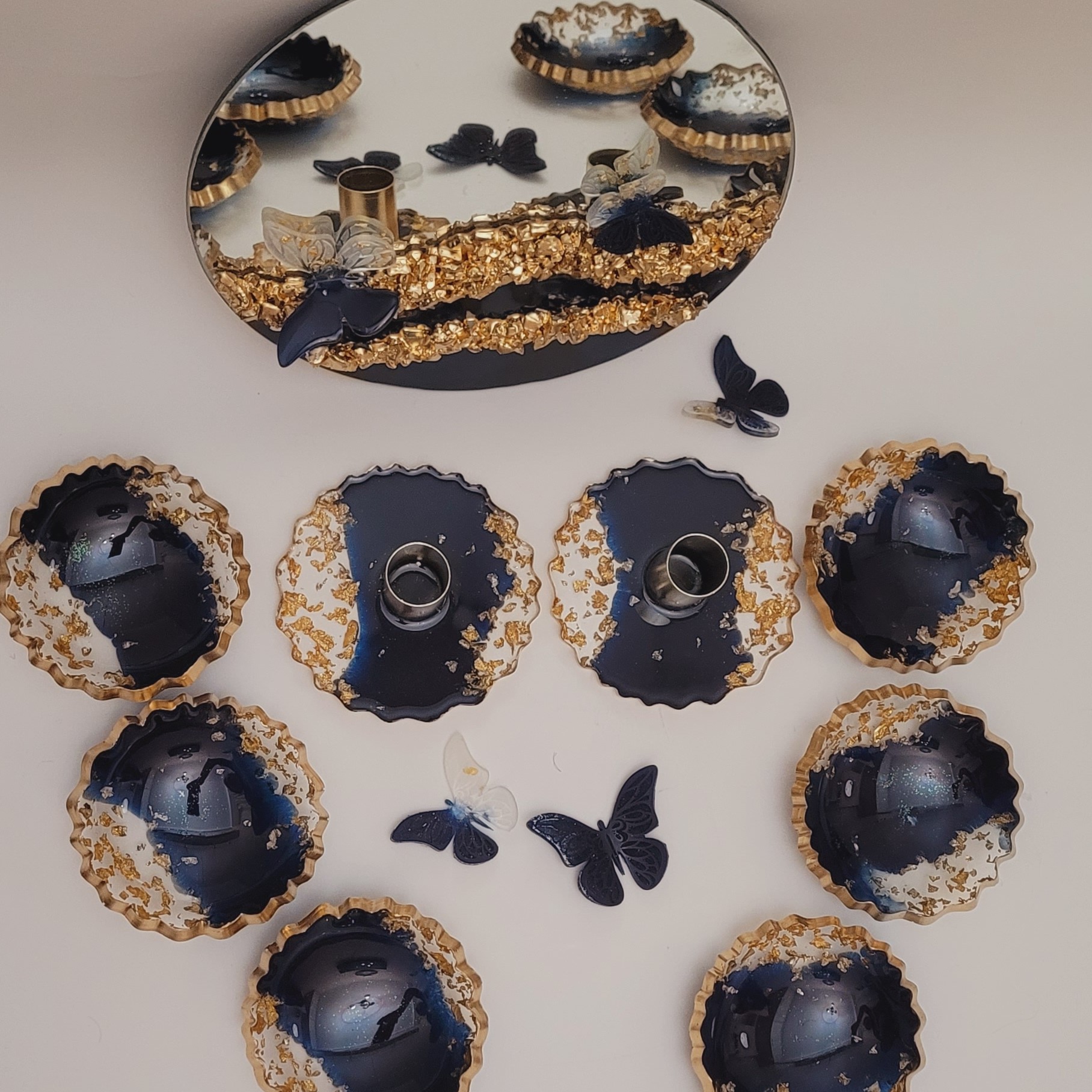 6تا پیاله قطر 13 سانت به همراه اینه قطر 20 سانت و دو عدد جاشمعی قطر 13 سانت اینه بدونپایه هست
